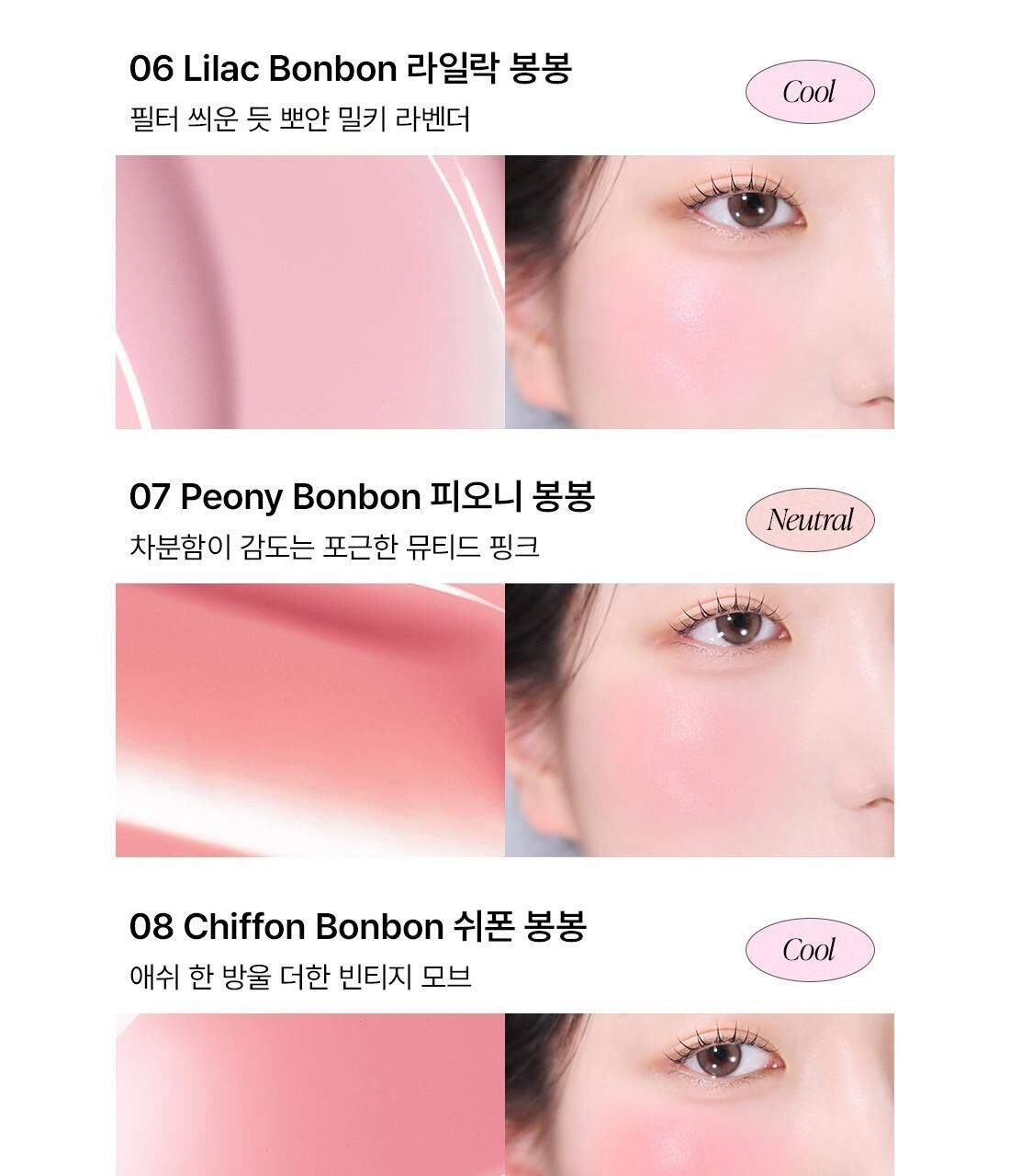 Dear.A 啵啵糖果腮紅 提供多達10種可愛迷人的蜜糖色調,從溫暖的裸色到活潑的粉色,應有盡有。🎨 它的粉質細緻,能完美貼合肌膚,即使多次疊擦也不會結塊或浮粉,妝感服貼持久。