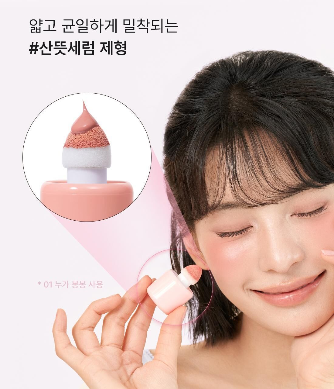 使用刷具或粉撲取適量產品,輕輕拍打於蘋果肌上,然後均勻暈染開來。