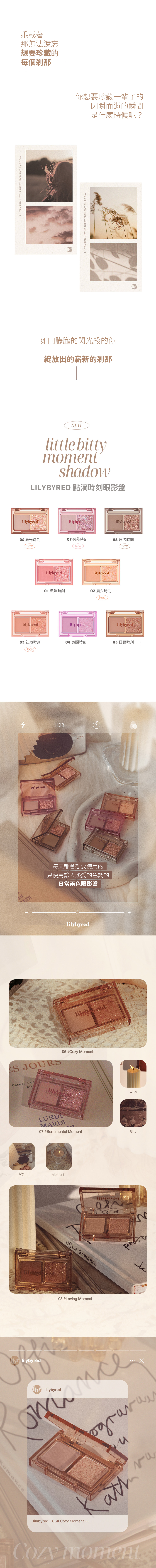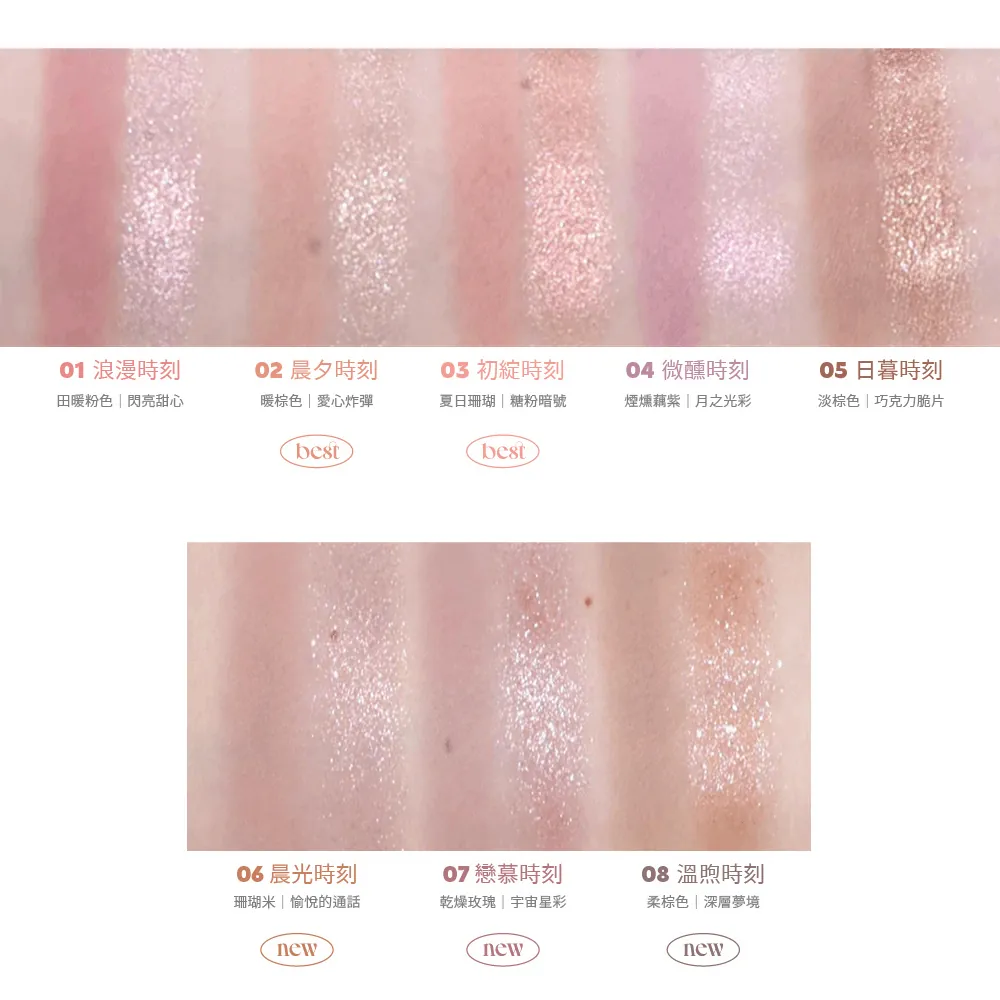 Lilybyred Little Bitty Moment Shadow 結合 奶油啞光色調 與 透明亮片,打造完美眼妝組合。無論是日常妝容還是特別場合,都能為您帶來自然閃亮的眼妝效果。