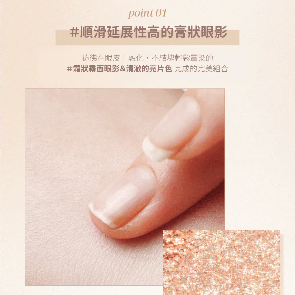 ✨奶油啞光+透明亮片,柔滑閃耀,輕鬆打造精緻眼妝!✨