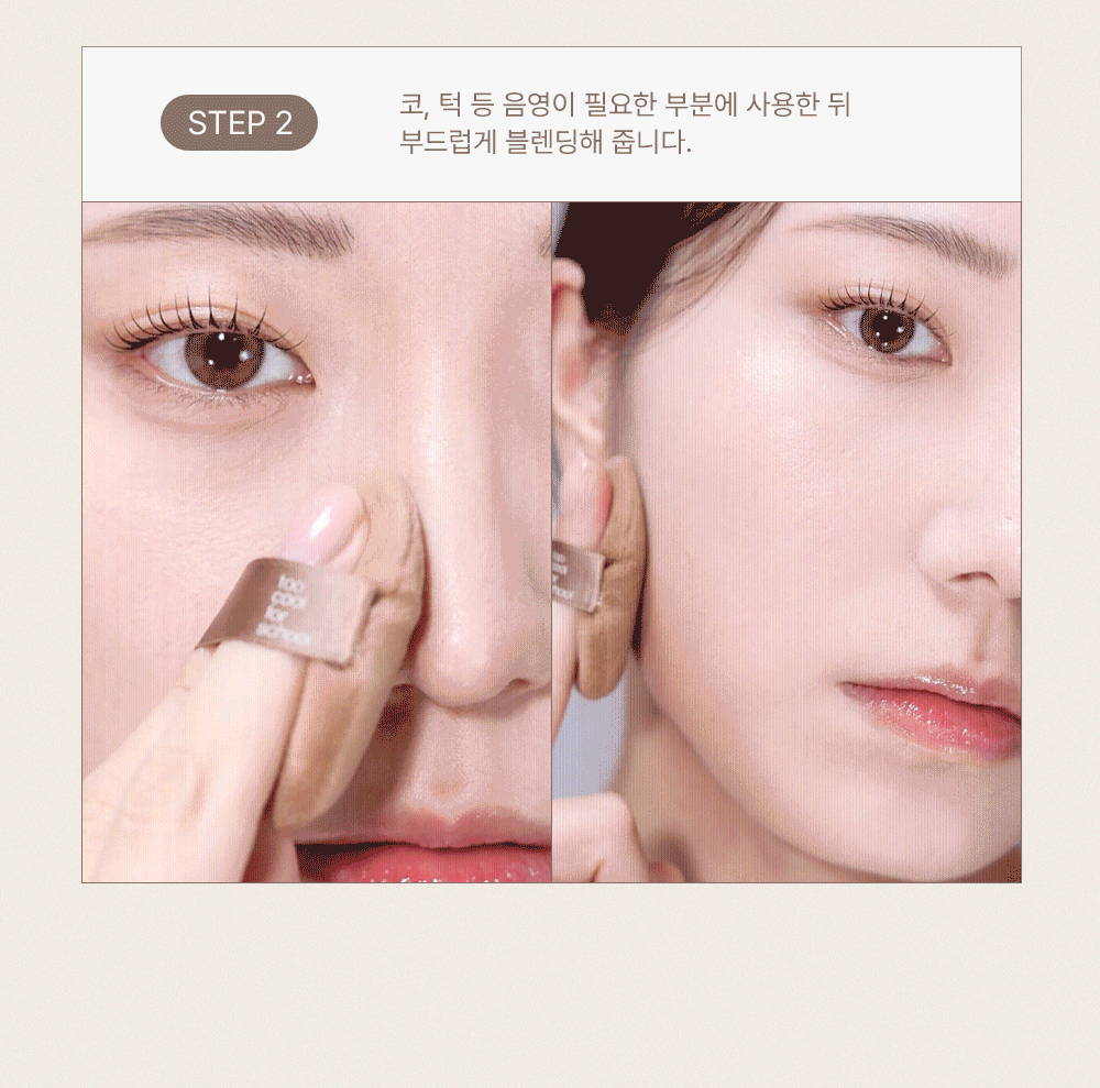 使用附贈的絲絨粉撲,輕輕掃過您想修飾的部位,如顴骨下方、鼻樑兩側和下巴,然後均勻暈染開來。