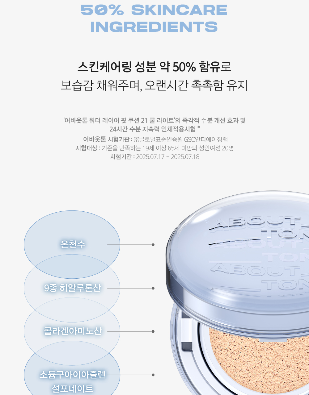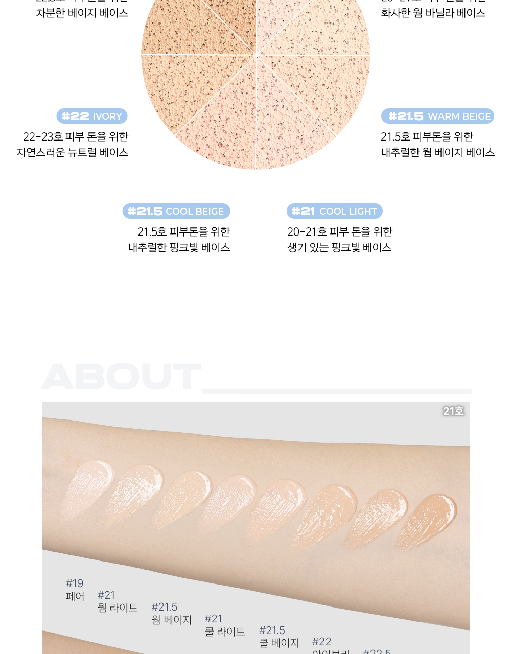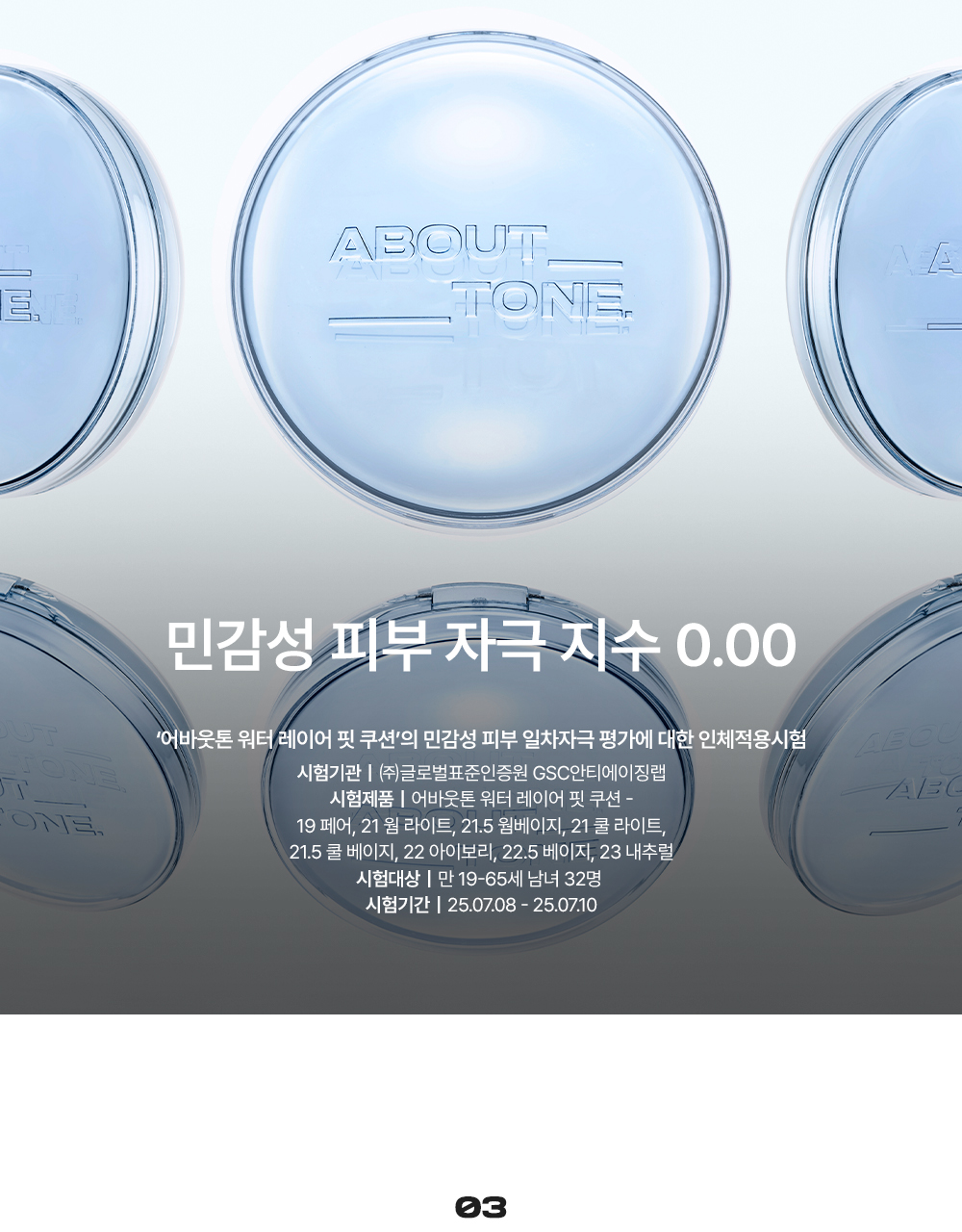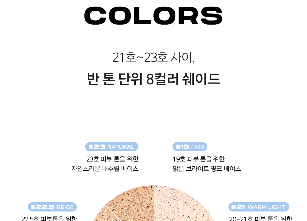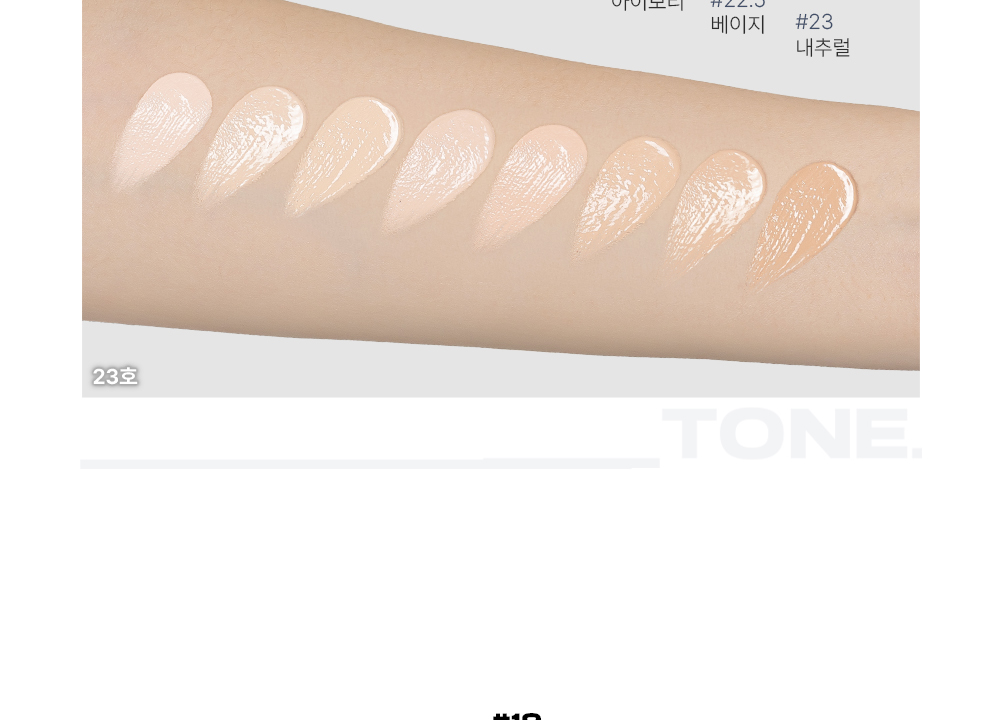 ABOUT TONE 水光柔焦氣墊粉底 已通過皮膚刺激測試,溫和親膚,提供8款專屬色調(#21至#23之間),讓您輕鬆找到最適合自己的顏色。