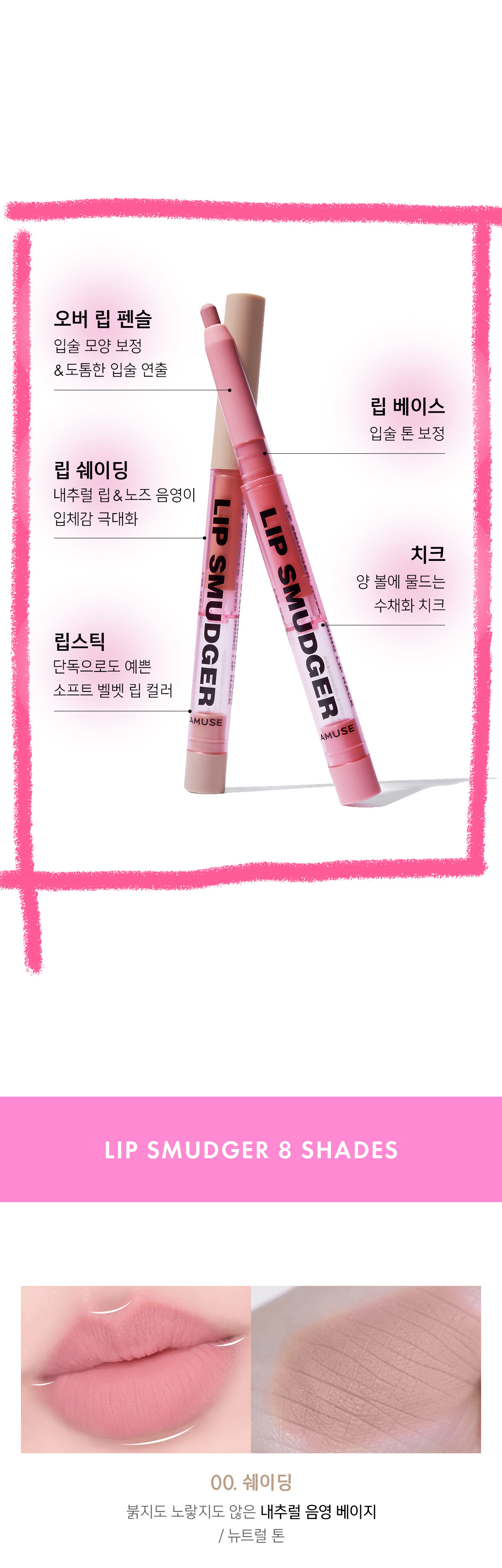 💖 5合1多功能,唇線、暈染、打底、頰彩皆可。