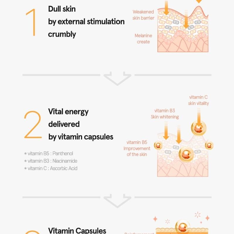 🍋 10萬顆活性維他命 C 膠囊: 每瓶含有十萬顆微米包覆膠原,觸膚即融,確保維他命 C 的新鮮活性精準滲透,不留任何黏膩殘留感。