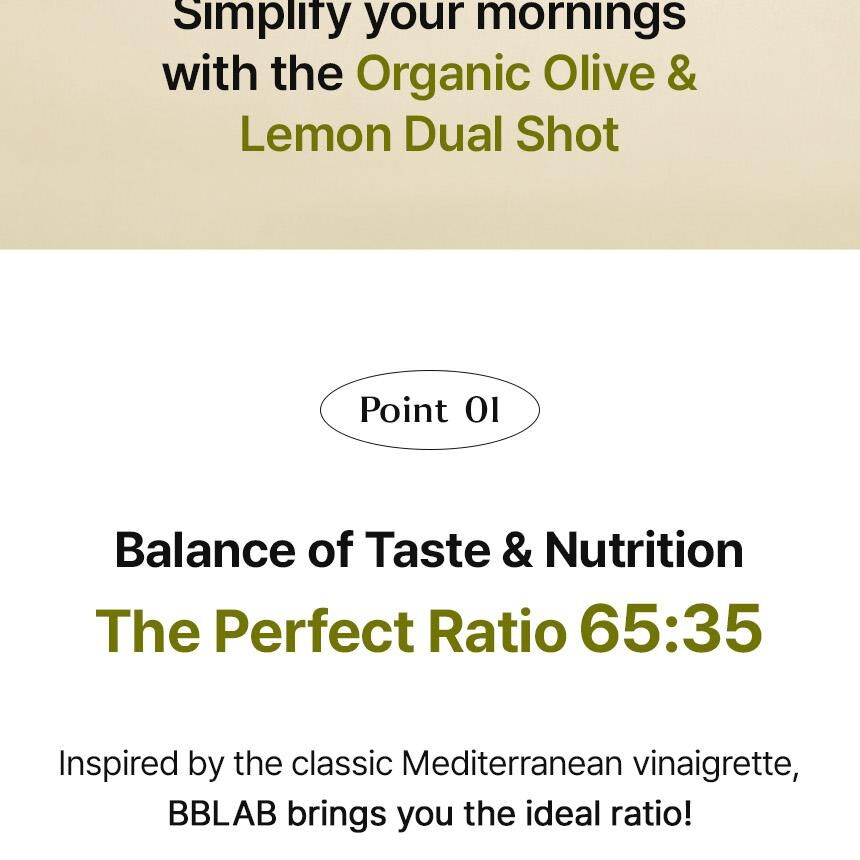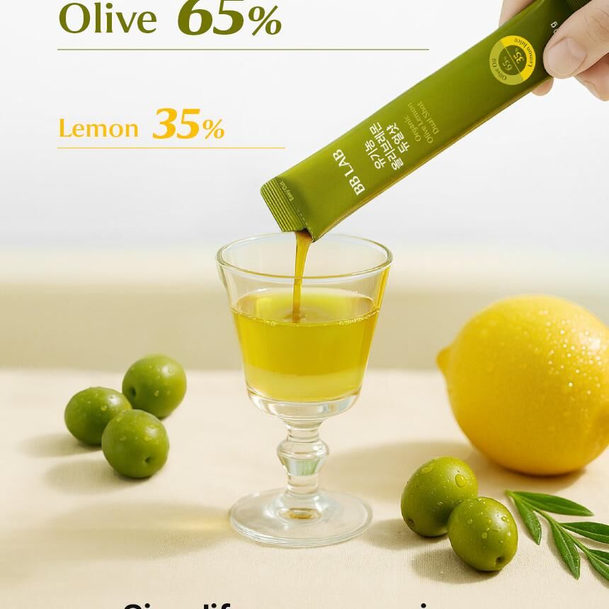 BB LAB Olive Lemon Dual Shot 是韓系「油水平衡」內在美容(Inner Beauty)的最高代表作。它解決了傳統「喝橄欖油」口感難以接受、或單喝檸檬汁過於刺激的痛點。這款 雙效精萃飲 利用橄欖油的脂溶性營養與檸檬的水溶性維生素協同作用,幫助調節體內代謝、掃除負擔。100% 西班牙產地直送的純淨成分,是追求極致透明感肌膚與輕盈體態人士的每日必備「液態黃金」。