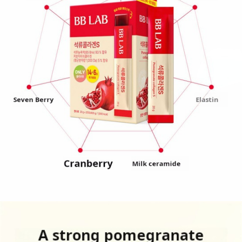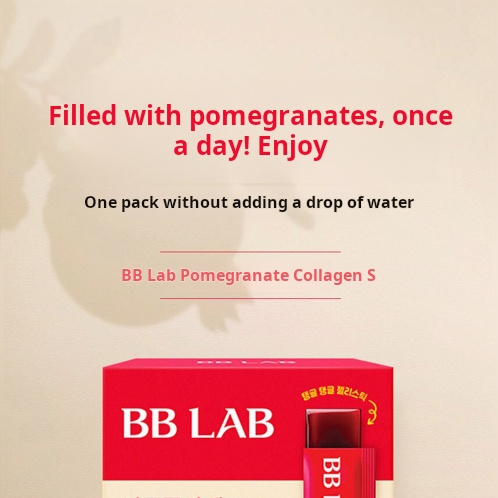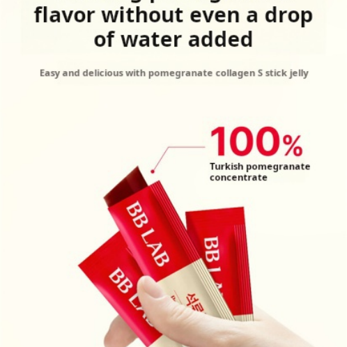 BB LAB Pomegranate Collagen S 解決了「想補充膠原蛋白卻怕腥味」以及「忙碌導致氣色暗沉」的痛點。這款 紅石榴果凍 S 核心在於其高濃度的鞣花酸成分,具備強大的抗氧化能力。紅石榴自古以來就是女性的養顏聖品,搭配 1000mg 的魚膠原蛋白,能雙效加乘彈力與透亮感。條裝果凍設計,不僅是健康的美容補充品,更是辦公室下午茶最理想的低卡替代方案。