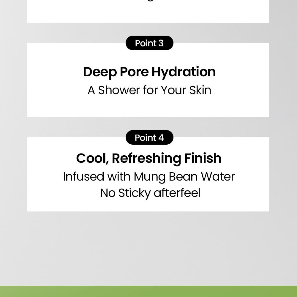 💧 綠豆水基底,提供清爽水潤,告別黏膩。
