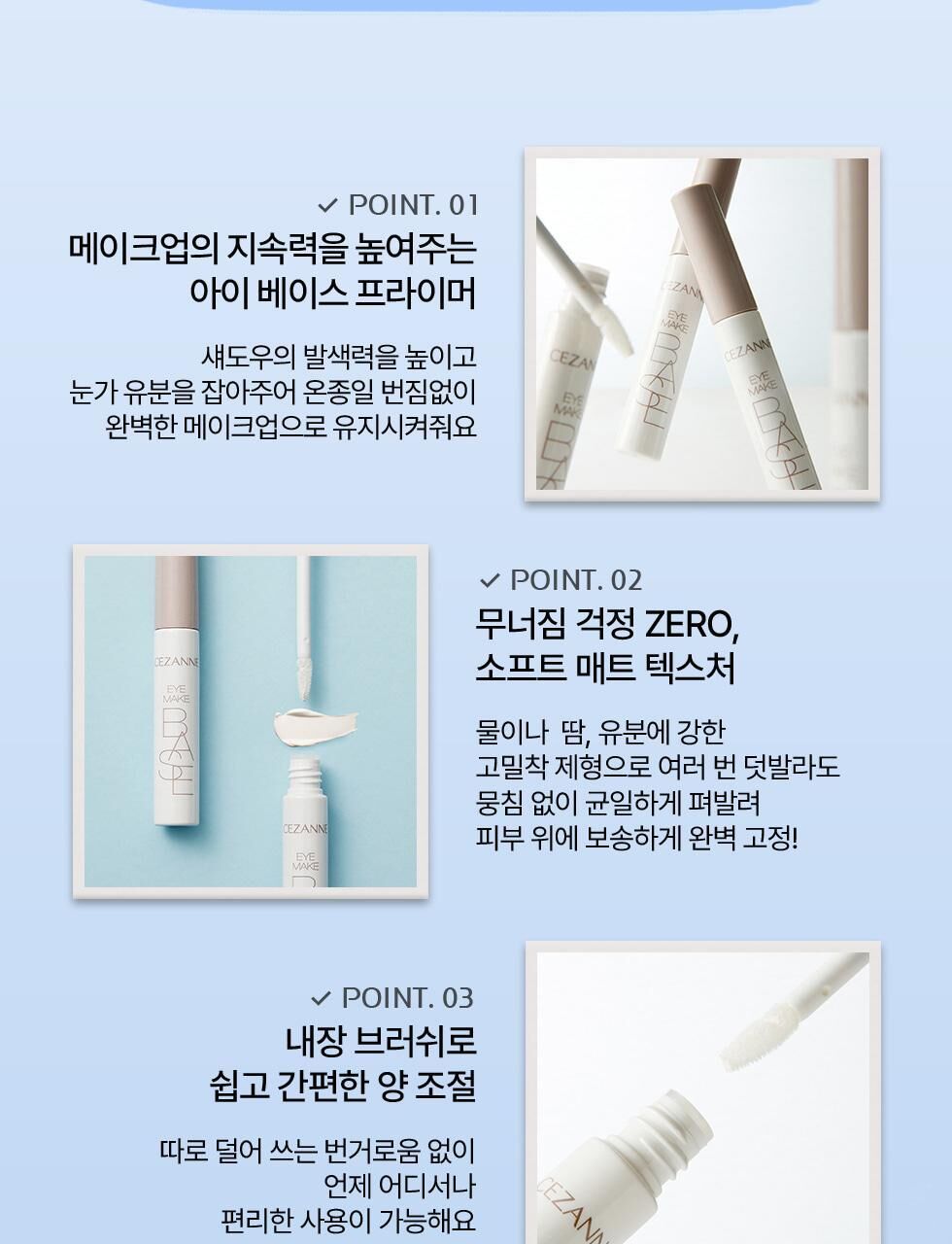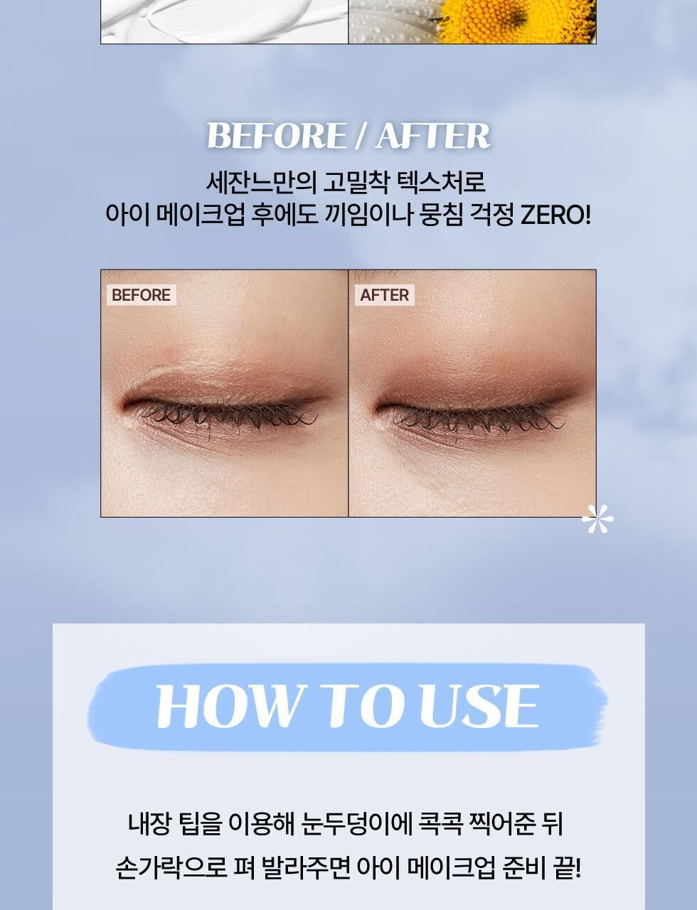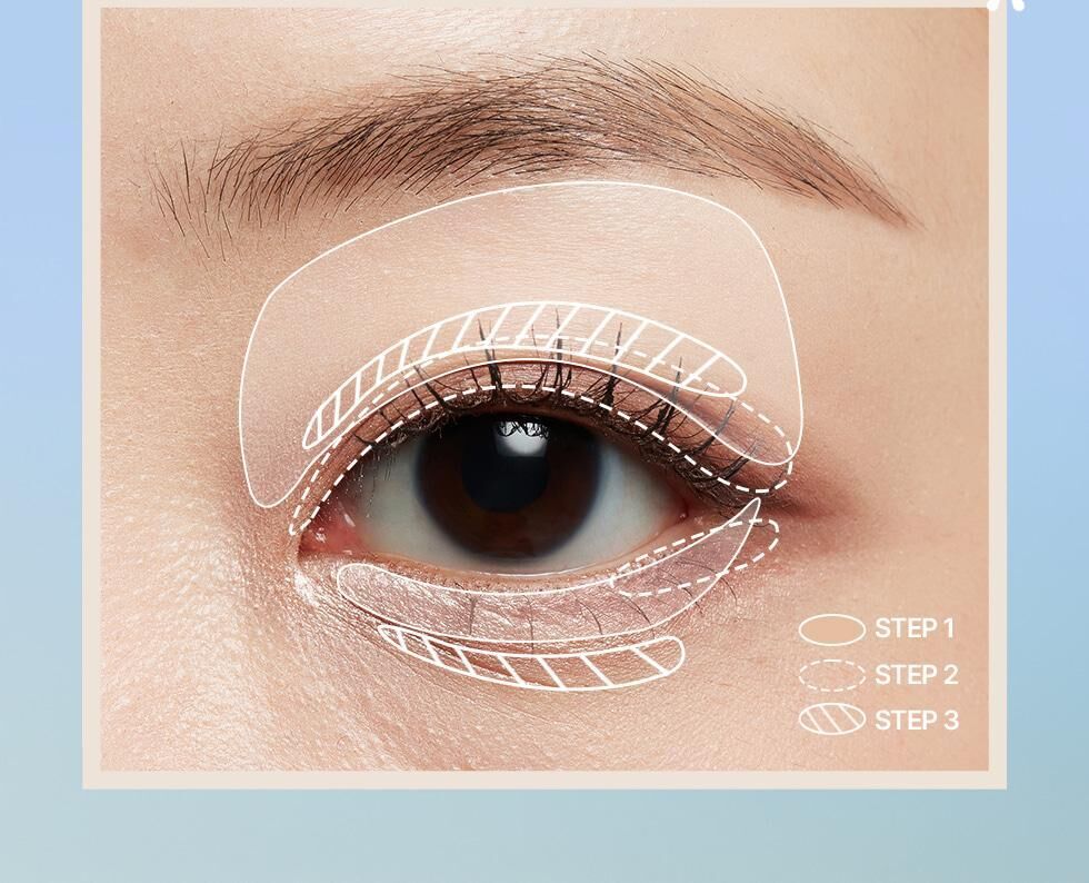 控油配方: 蘊含二氧化矽和滑石粉等成分,能有效吸附眼部多餘油脂,防止眼影積線和暈染。