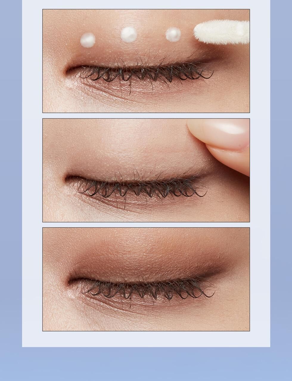 使用刷頭取少量產品,均勻塗抹於眼部周圍。
