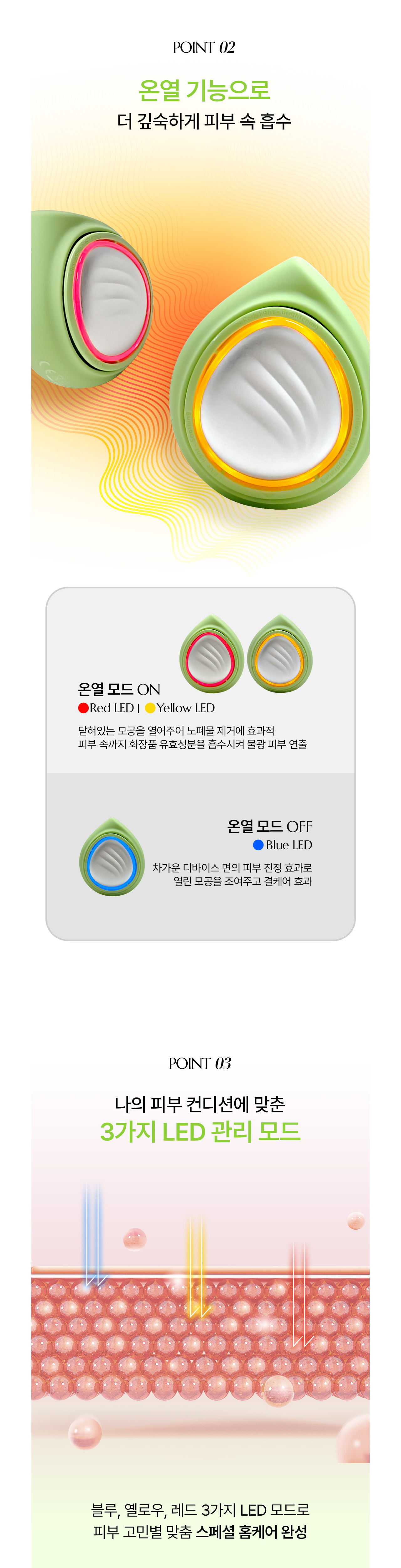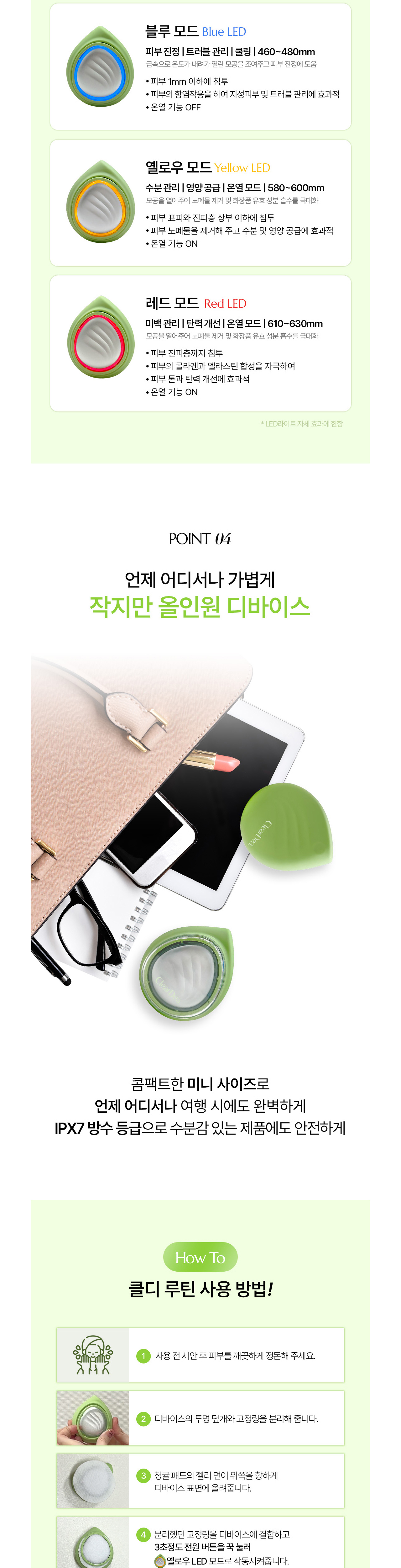 ❤️ 紅光:美白提亮、彈性改善、溫熱模式。