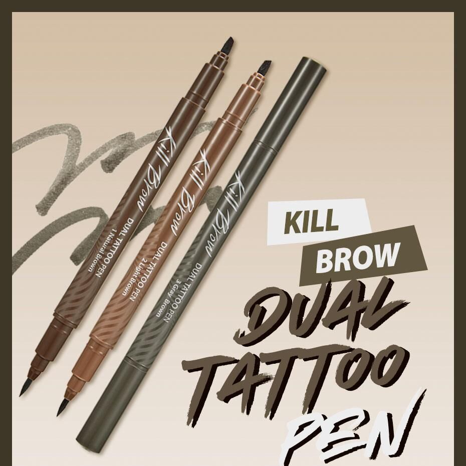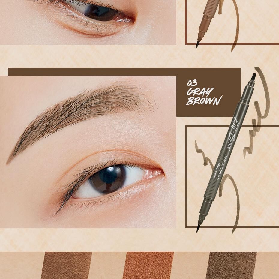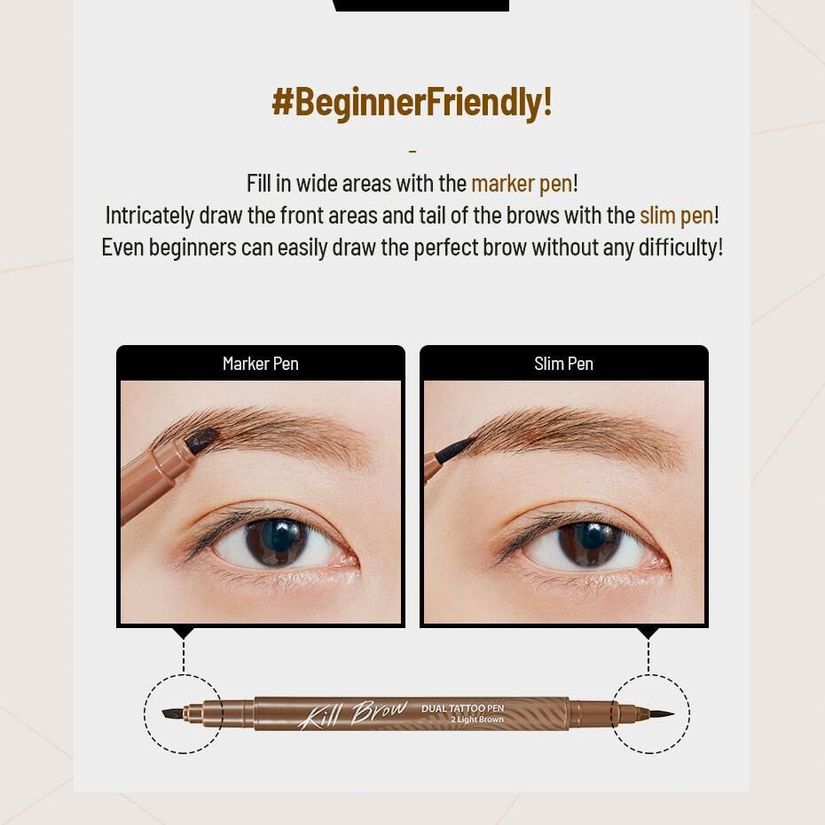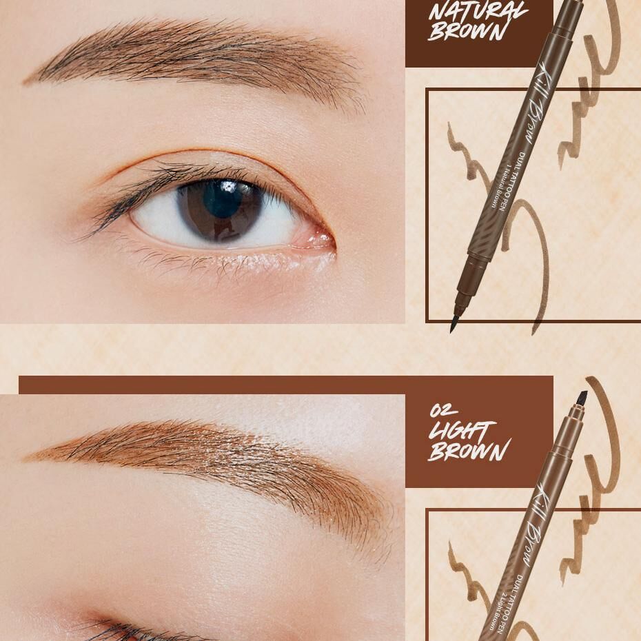 🖊️ 雙頭機能設計: 一頭是紋眉液體筆,另一頭是修正液擦拭筆,畫錯也能秒救。