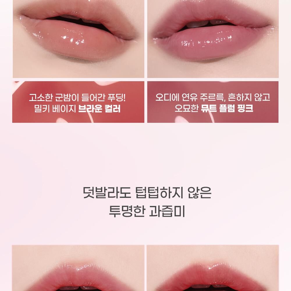 🍓 水光透明玻璃唇妝:一抹即現晶瑩亮澤效果,呈現飽滿立體的玻璃唇效。