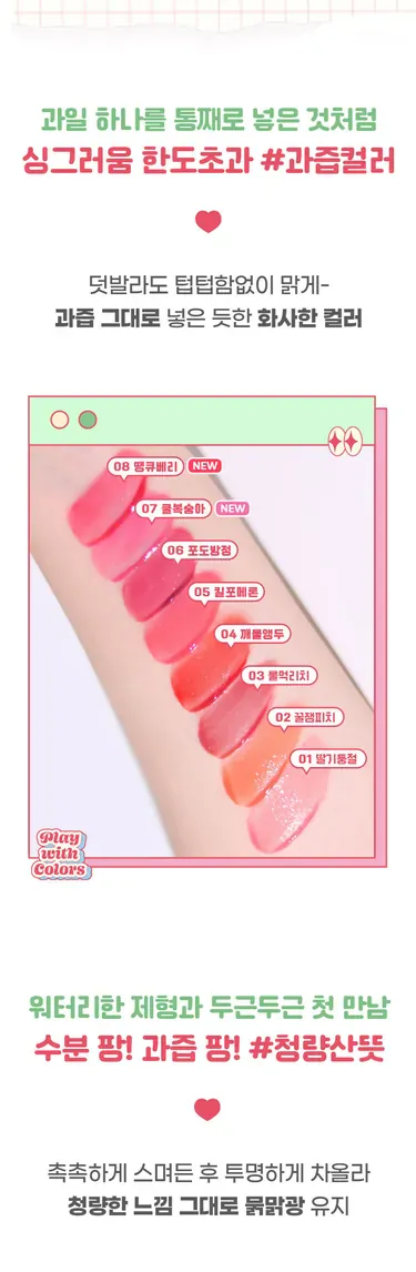 🌸 8 款清新果汁色:從活力草莓到優雅梅子,滿足各種妝容需求 💄