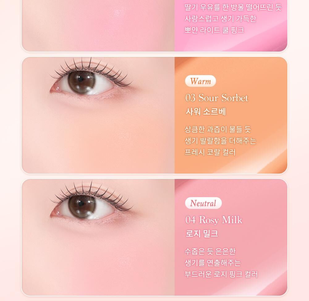 優雅色調: 產品的粉色調涵蓋中性粉和冷調淺粉,非常適合打造當前流行的芭蕾核心 (Ballet Core) 妝容,為雙頰注入活力與可愛感。