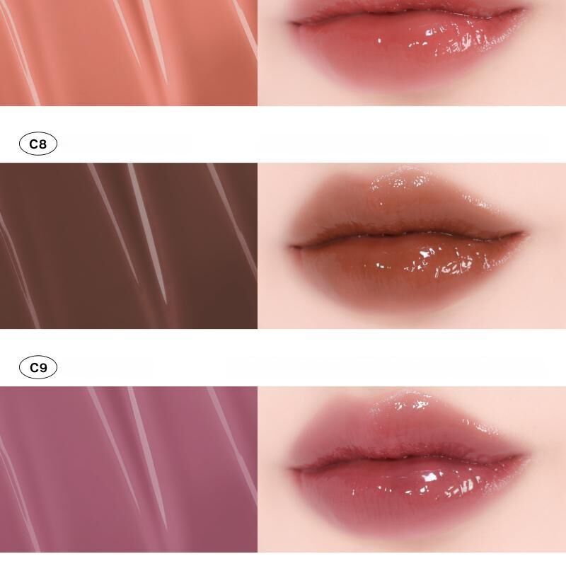 ✨ 極致果凍光澤: 創新的 Glossy Gel 質地,上唇瞬間形成一層如琉璃般晶瑩剔透的水光膜,呈現飽滿、澎潤的「糖葫蘆」光澤。