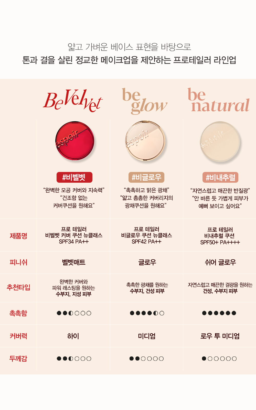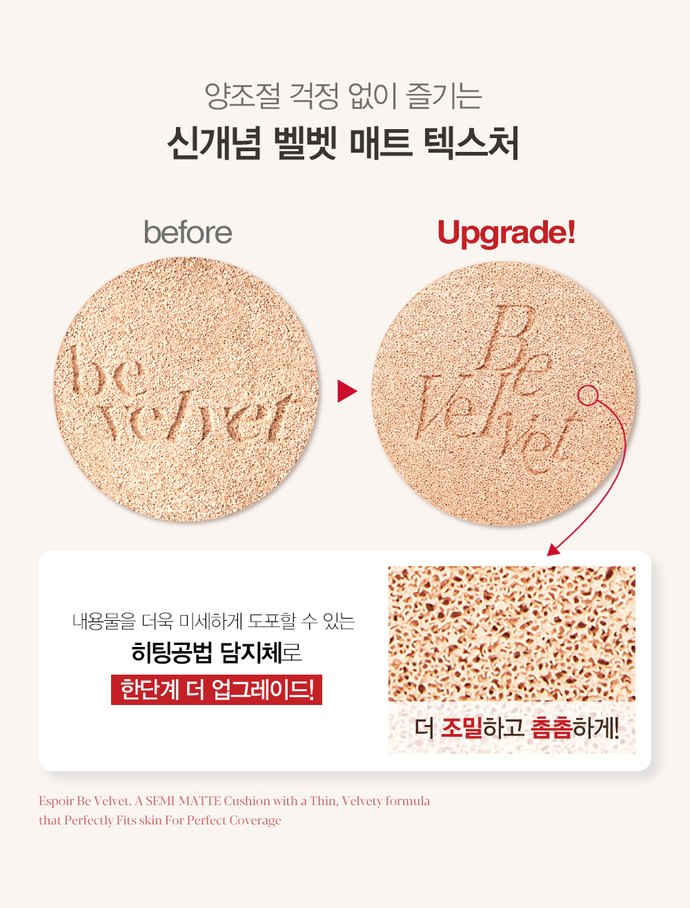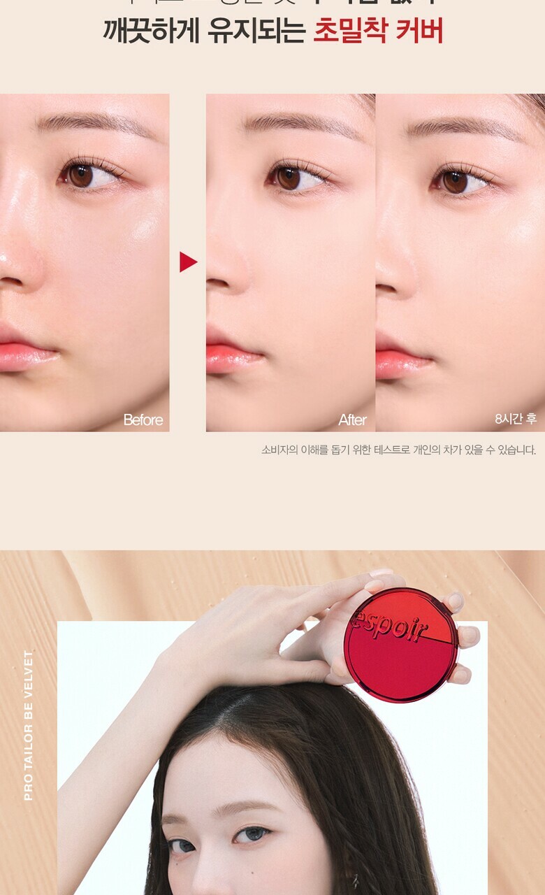 超級絲絨啞光:這款氣墊粉底由 espoir 推出,以極致的絲絨啞光質地著稱,能輕鬆呈現如同自身肌膚般的自然妝效。💖