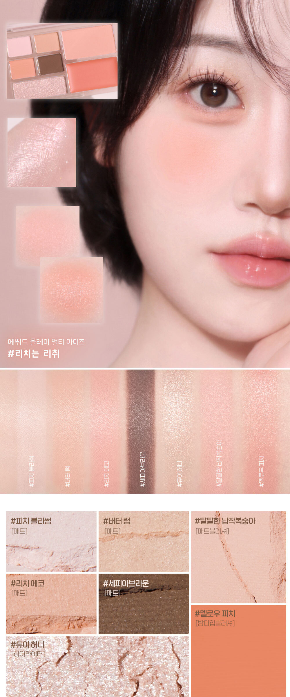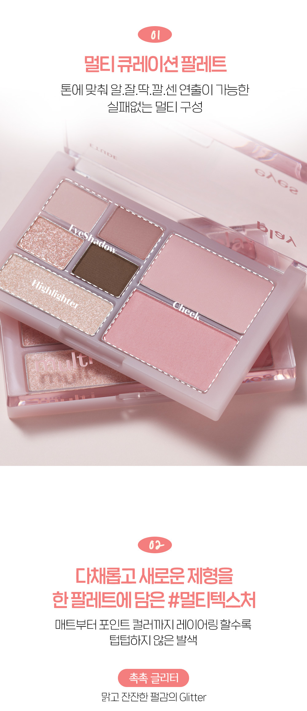💧 立體光影飲:內含霧面、細閃與亮片多種質地,輕鬆打造深邃眼神與立體飽滿的頰彩。