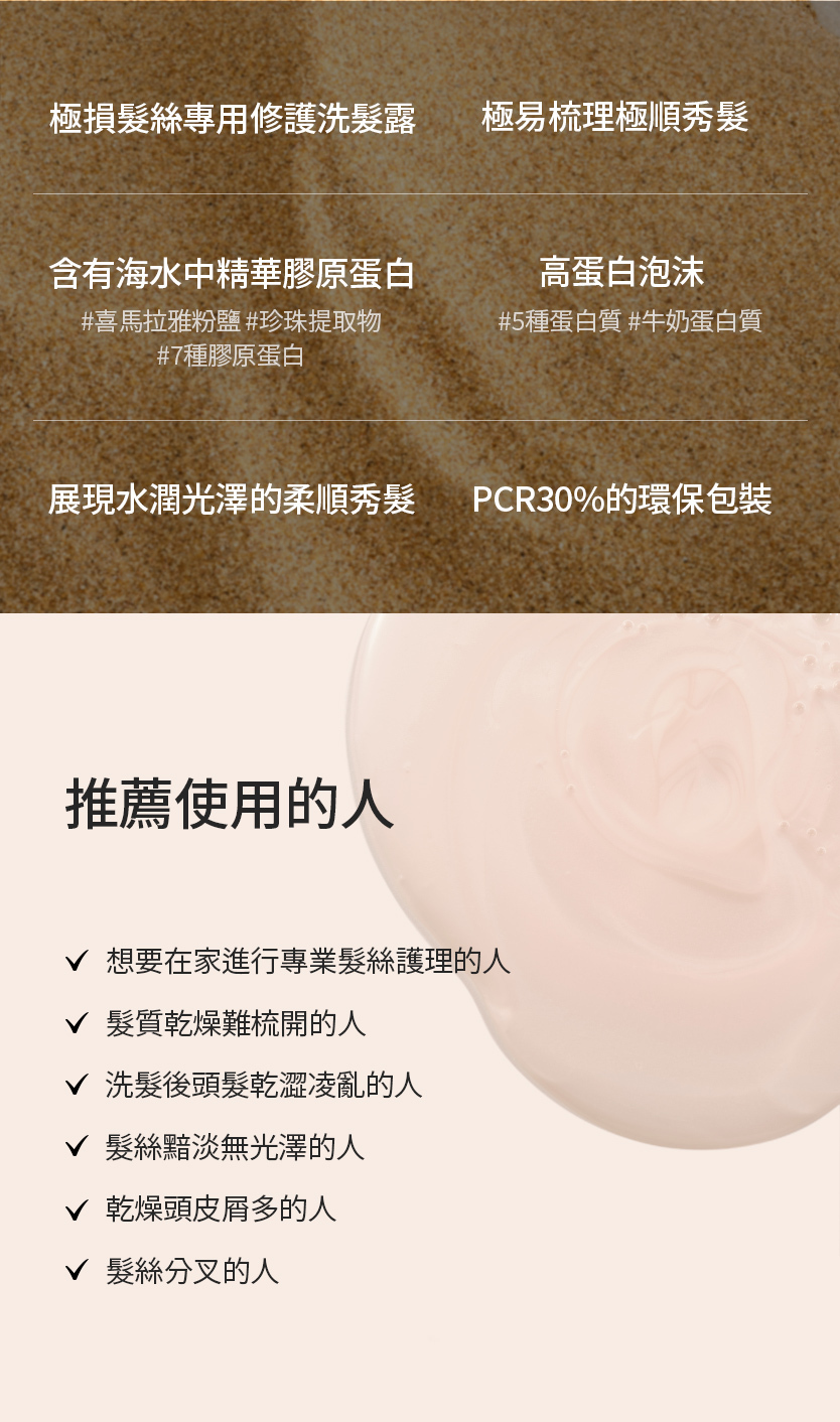 ✨粉紅鹽舒緩掉髮,膠原蛋白深層修護,海洋珍珠水潤光澤!✨
