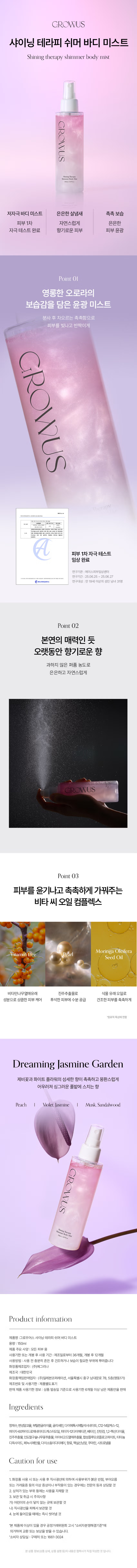GROWUS Shining Therapy Shimmer Body Mist 是一款定義「全角度發光」的身體護理單品。它將護膚噴霧與身體高光完美結合,解決了身體打亮產品容易沾染衣物或過於沉重的問題。這款噴霧在靜置時呈現清透層與閃耀層,使用前輕搖,亮粉即會像星塵般飛舞。噴灑在四肢與頸部,能透過光學散射隱形肌膚細微瑕疵,讓膚質看起來更加細膩白皙。150ml 的大容量設計,讓妳從頭到腳都能散發出如同海洋女神般的迷人光采。
