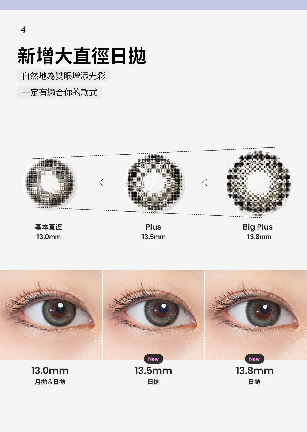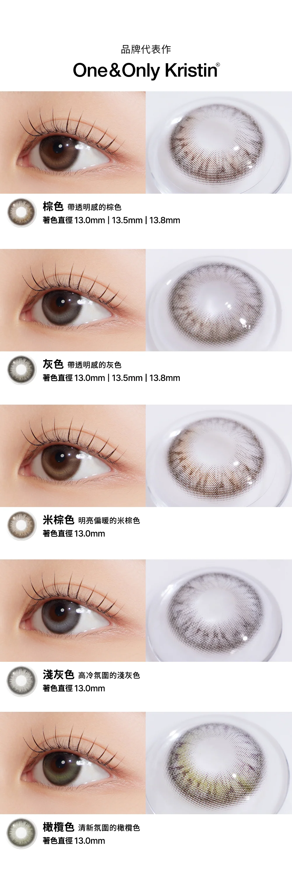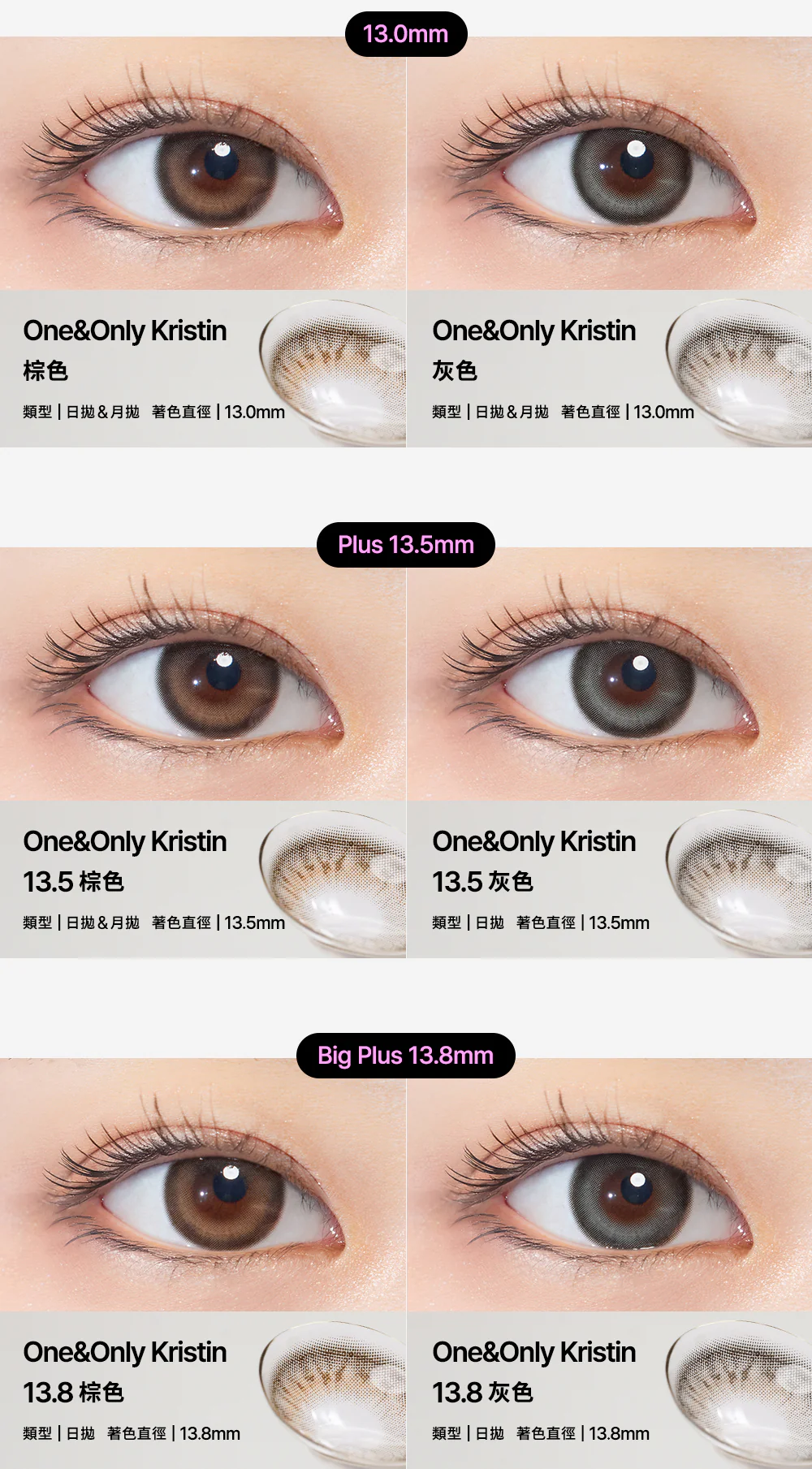 🌟 經典系列的「超大」進化:保留了張員瑛同款 One & Only 系列的靈魂設計,將著色直徑大幅升級至 13.8mm。專為追求「極致放大感」同時又不失「仿真自然感」的女孩打造。
