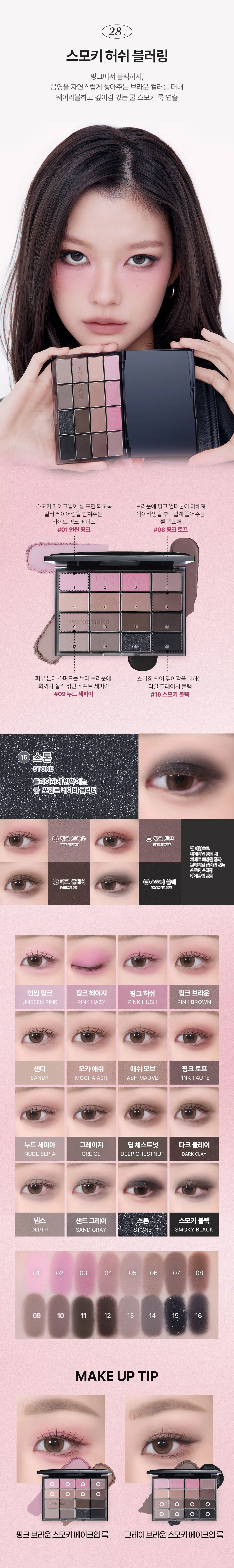 🌿 百變質地盾:一盤收錄霧面、細閃及大鑽閃片,完美切換日常妝與深邃煙燻妝。