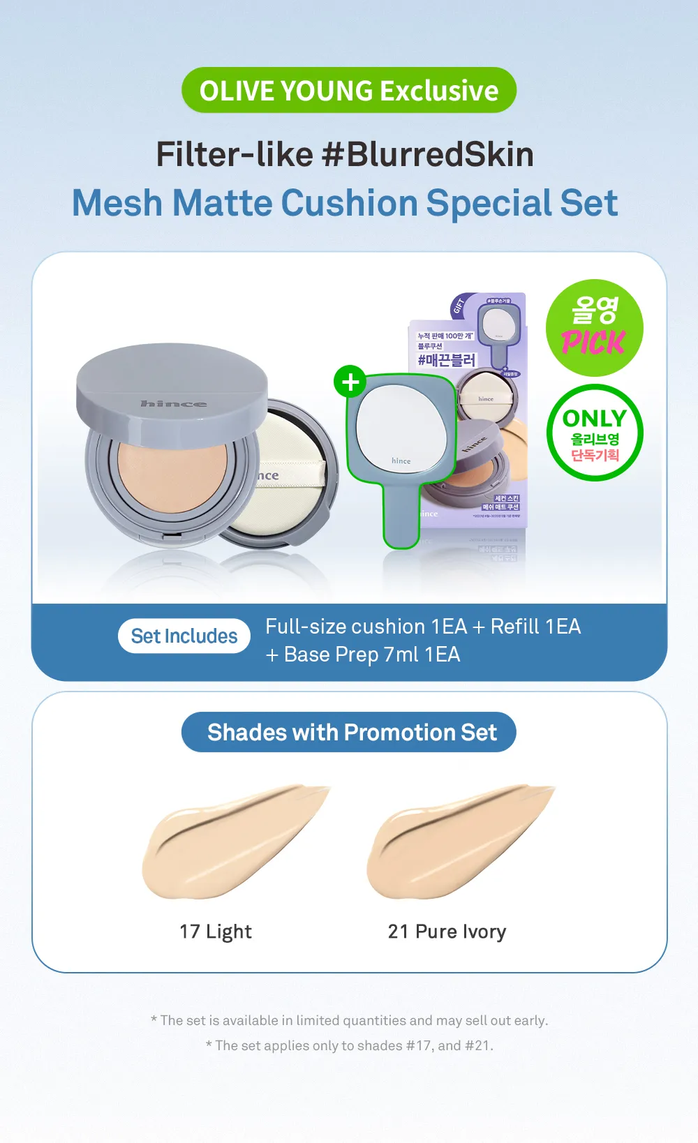 Hince 藍色沁膚煥顏柔霧氣墊氣墊粉底 SPF40 PA++ 附補充裝【4款色號】