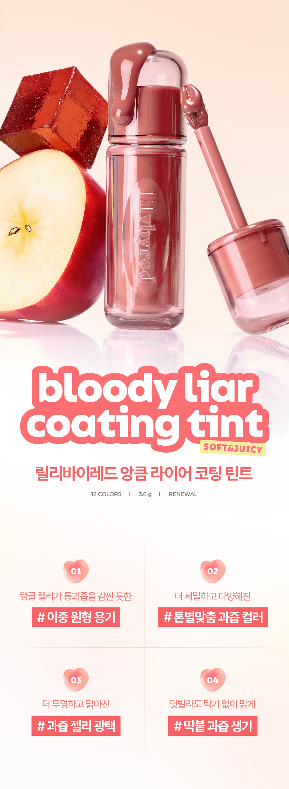 LILYBYRED 經典回歸的「Bloody Liar Coating Tint 偽裝果汁感水光唇釉」。這款唇釉專為追求「立體水光」與「原生好氣色」的香港女生研發。針對傳統水光唇釉容易氧化變深、質地厚重的痛點,LILYBYRED 採用了先進的成膜技術。這是一款結合了「高透明度光澤」與「長效持色」於一身的 2026 明星單品。其獨特的果凍塗層能像保鮮膜一樣鎖住水分,讓您的雙唇在 LAKA 唇線筆 的修飾下,散發出如蜜糖包裹果實般的誘人光澤。