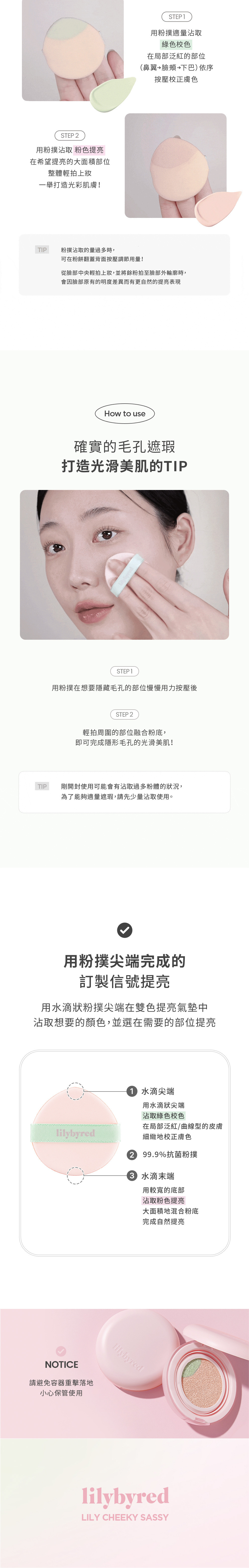 💚 綠色調中和泛紅,蜜桃色調提亮暗沉。