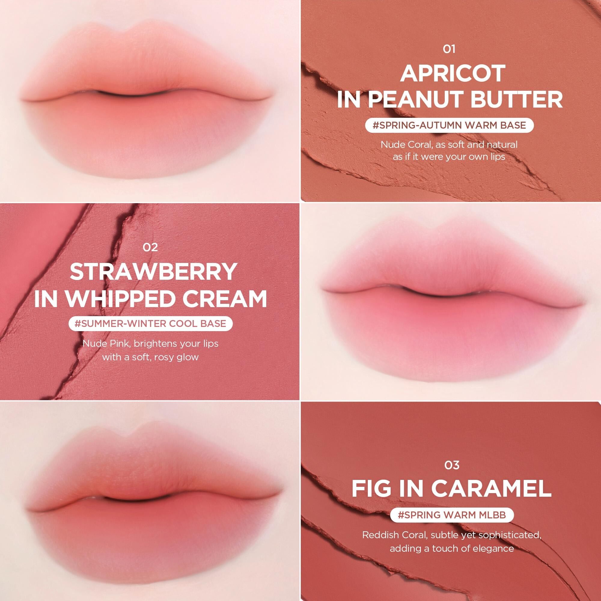 ✨ 舒芙蕾奶油質地,一按即融,打造柔霧唇頰。
