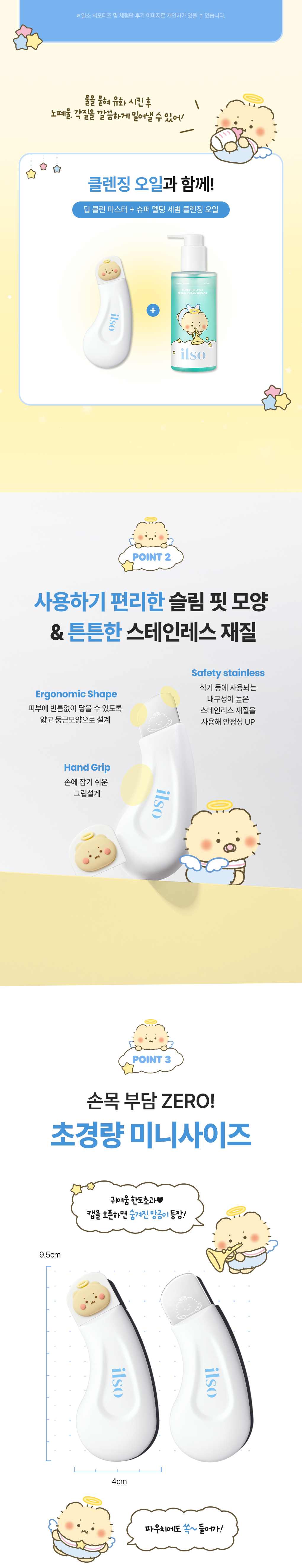 🛠️ 不鏽鋼專業黑頭鏟 (Clean Master):專為人體工學設計的弧形刮片,能完美貼合鼻翼、下巴等面部死角。配合 ilso 導出液或鼻貼使用,能輕鬆、無痛地將浮出的黑頭與皮脂徹底清除,告別傳統手擠傷害。