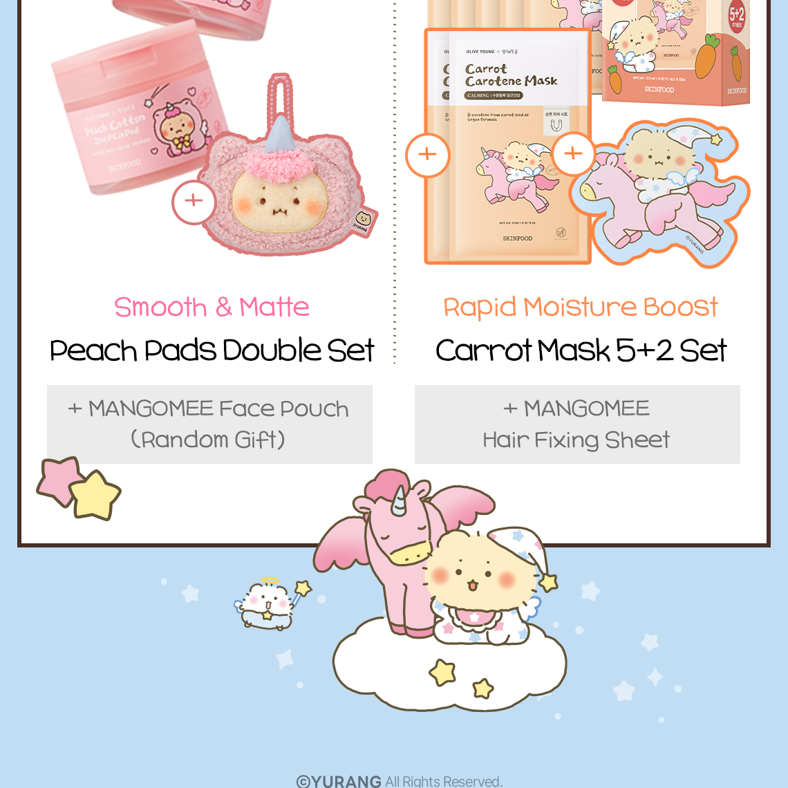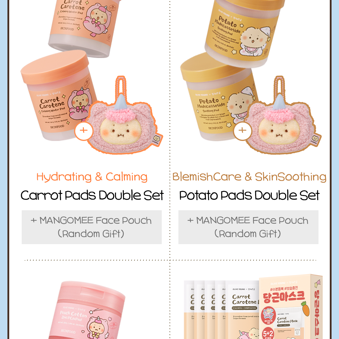 🎁 mangomee 限定驚喜套裝:超值組合內含 正裝棉片 × 2 罐,更隨組加贈超軟萌的 mangomee 角色絨毛化妝包 (Face Pouch),大容量設計讓妳收納保養品時也被治癒。