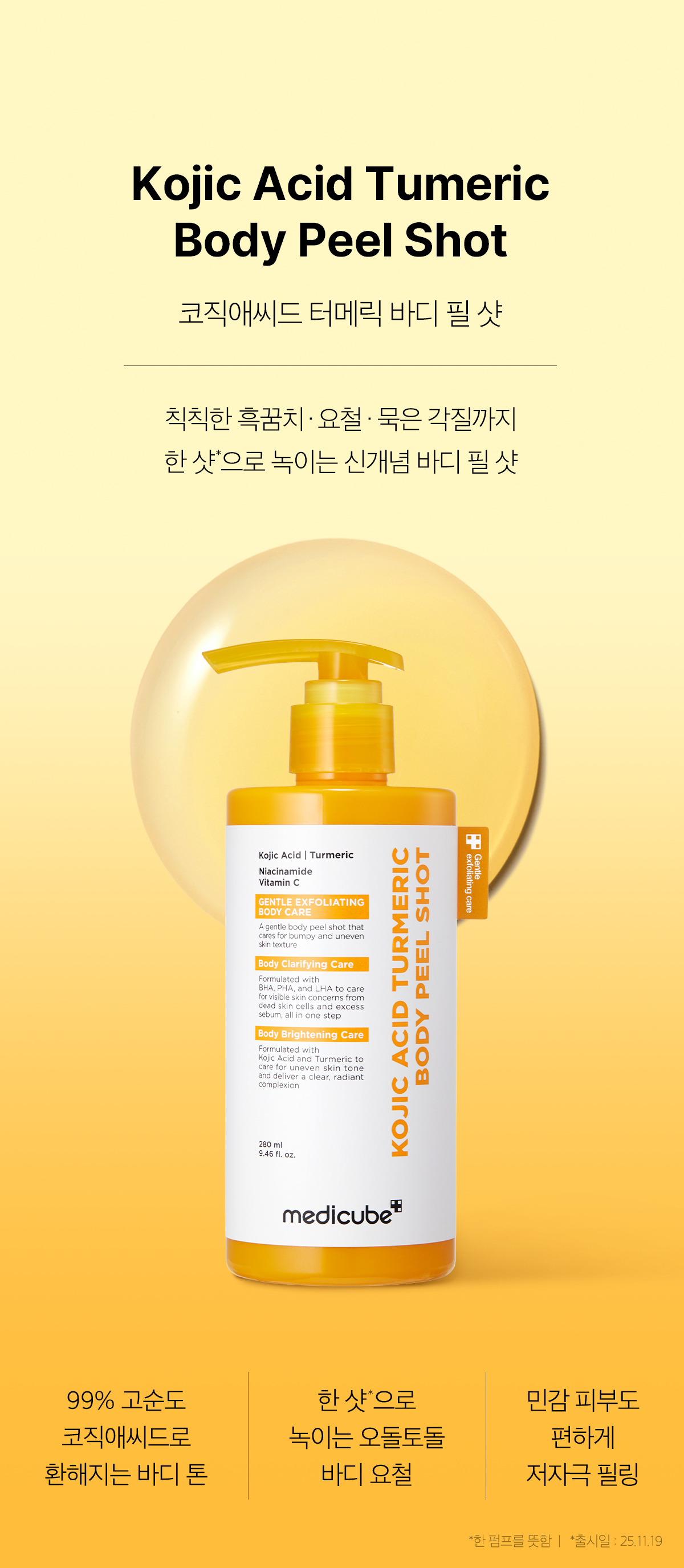 Medicube 麴酸薑黃身體煥膚磨砂膏 將臉部頂級的亮白科技延伸至全身肌膚。解決了市面身體去角質僅能維持短暫平滑,卻無法實質改善暗沉的痛點。這款「Body Fill Shot」模擬了醫美級的身體煥膚療程,透過麴酸與薑黃的黃金組合,從根源淡化色沉,讓全身肌膚展現如同拋光過後的剔透感。大容量設計能輕鬆照顧到每一吋肌膚,是打造夏季「發光體質」的秘密武器。