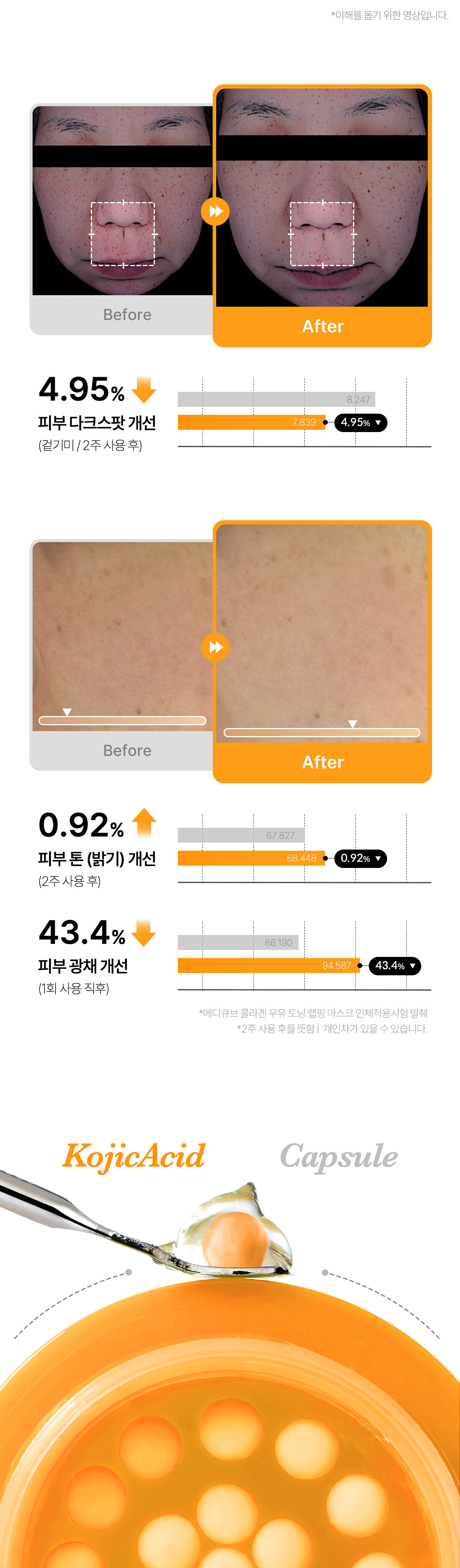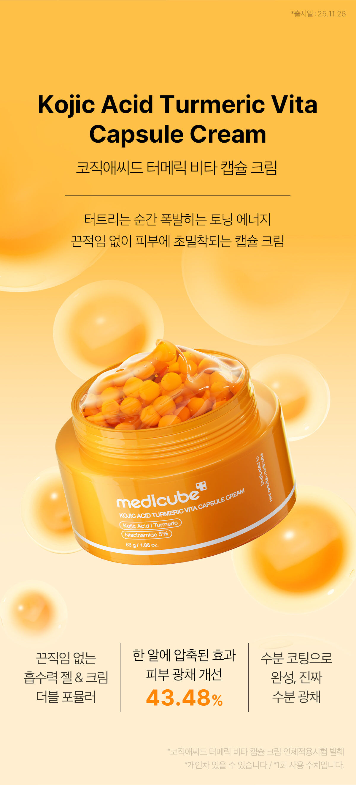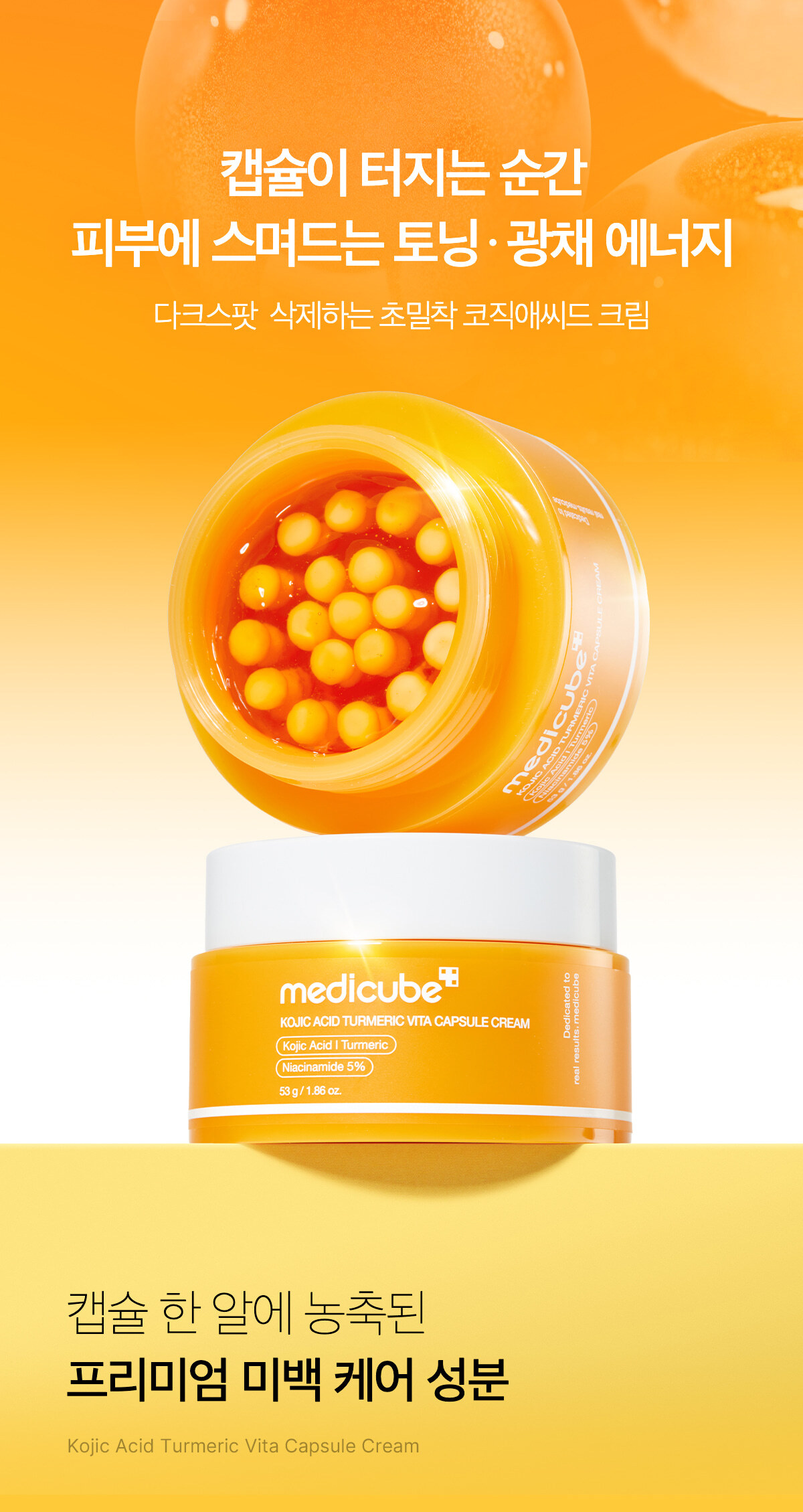 💊 維他命膠囊保鮮技術:將活性亮白成分封存於「淡黃色膠囊」中,搭配「橘色能量凝膠」,確保每次使用都是最新鮮的護膚能量。