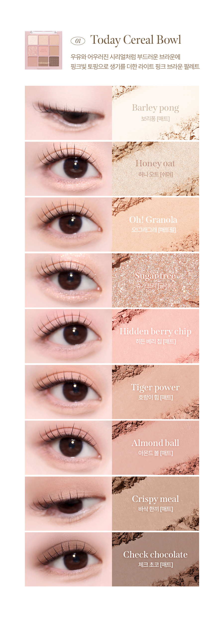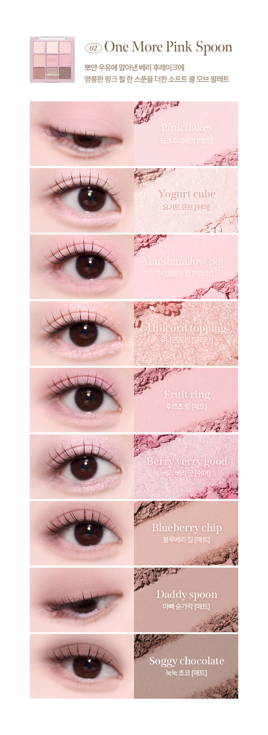 ✨ 多重質地融合: 一盤集合高顯色啞光、細緻緞光與閃耀亮片,滿足從日常到華麗的所有需求。