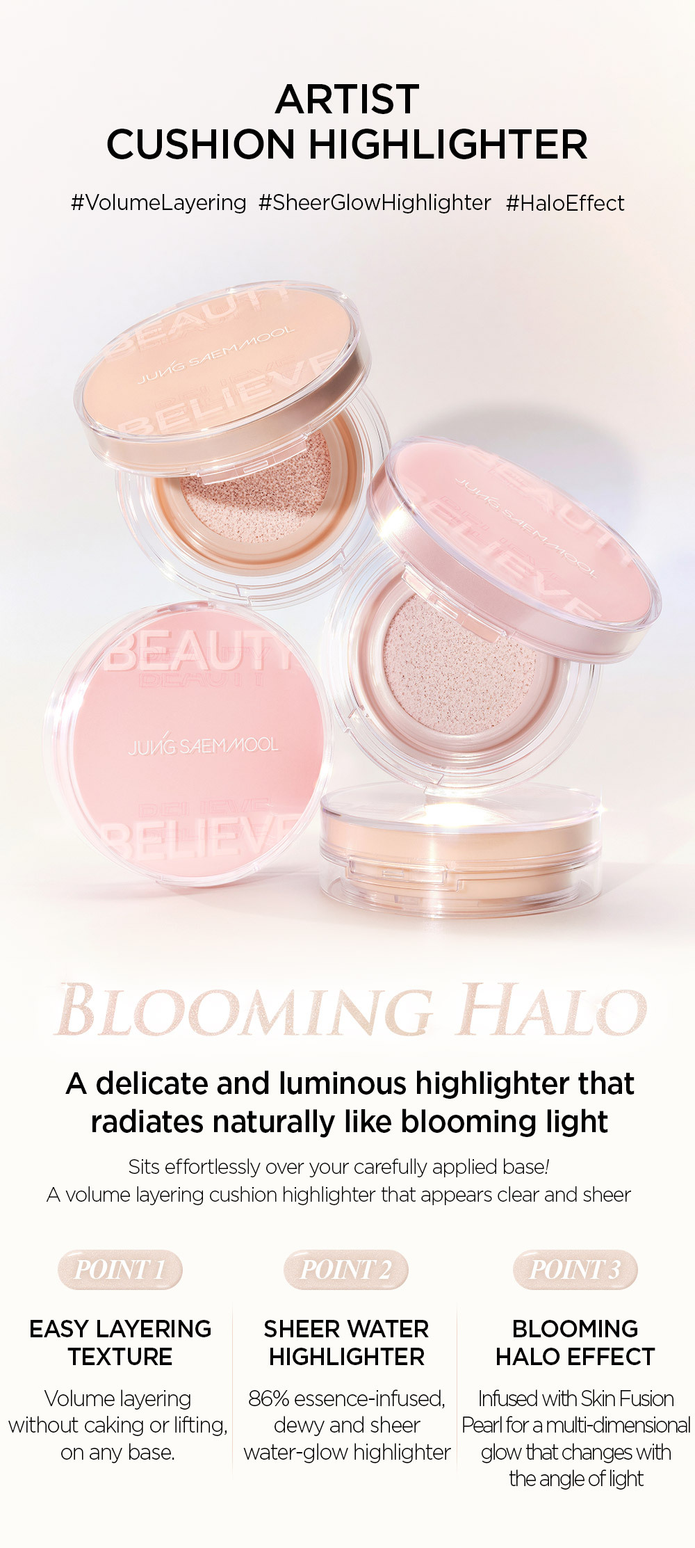 ✨ 氣墊式高光,輕拍上妝,打造立體輪廓。