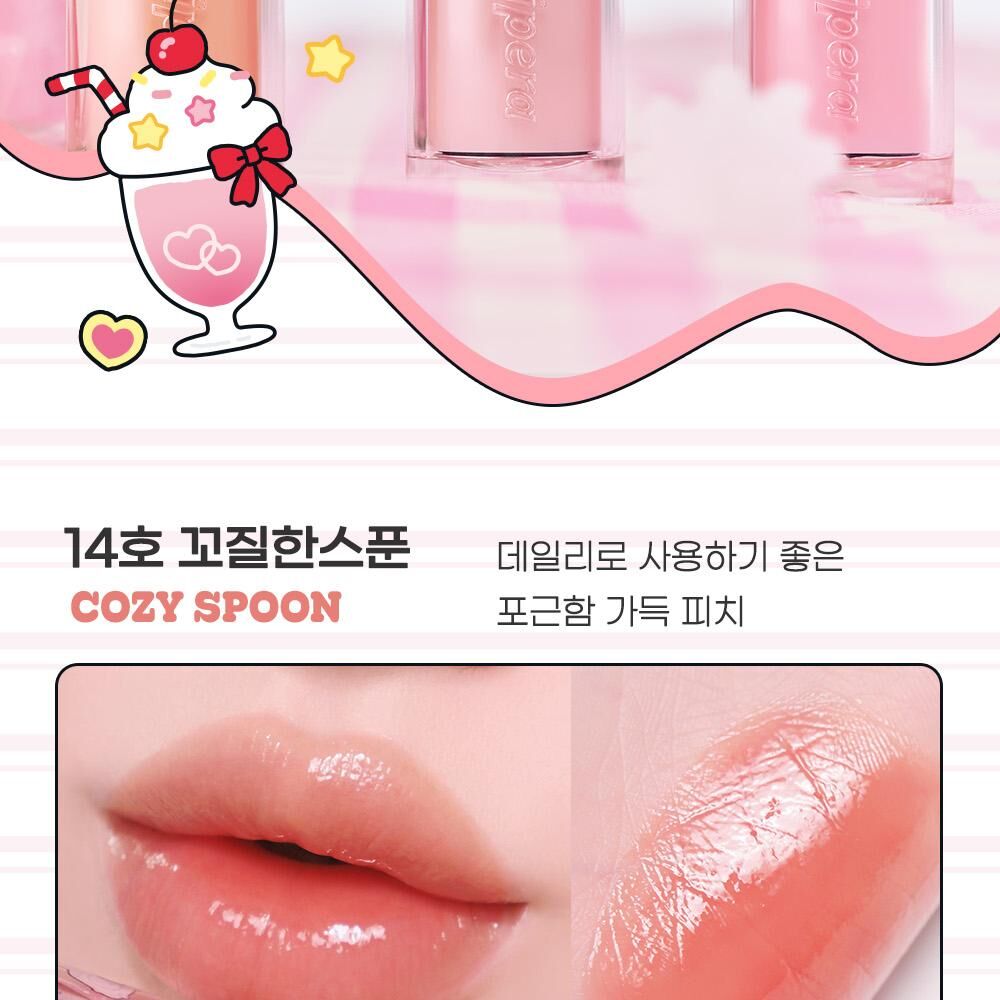 ✨ 三層光澤機制 (Triple Layer Glow):PERIPERA 獨家研發的亮澤技術,能在唇部表面形成三層透明水光膜。上唇後呈現出極致晶瑩、澎潤(Plumpy)的質感,且完全不黏膩。