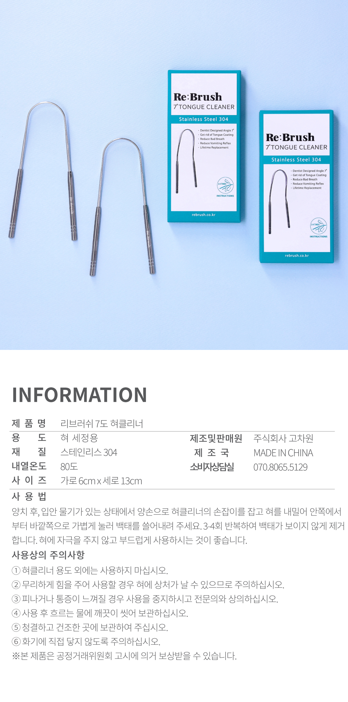 RE:BRUSH 專業級 7 度斜角不鏽鋼舌苔清潔棒