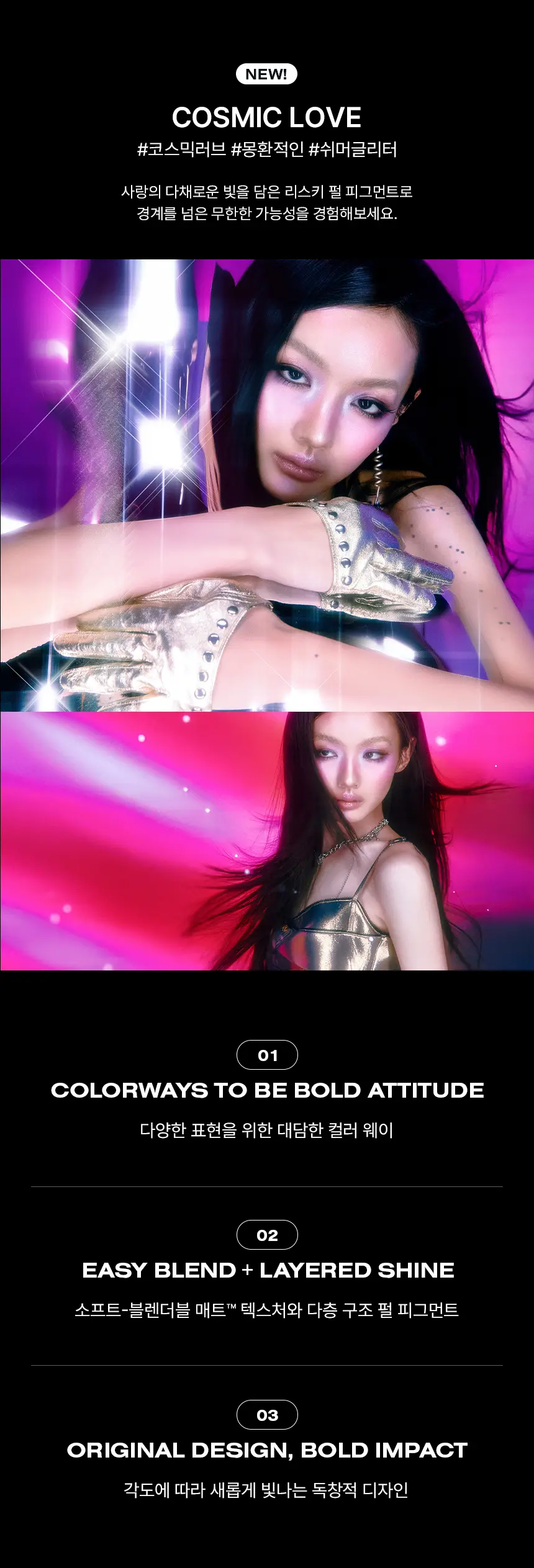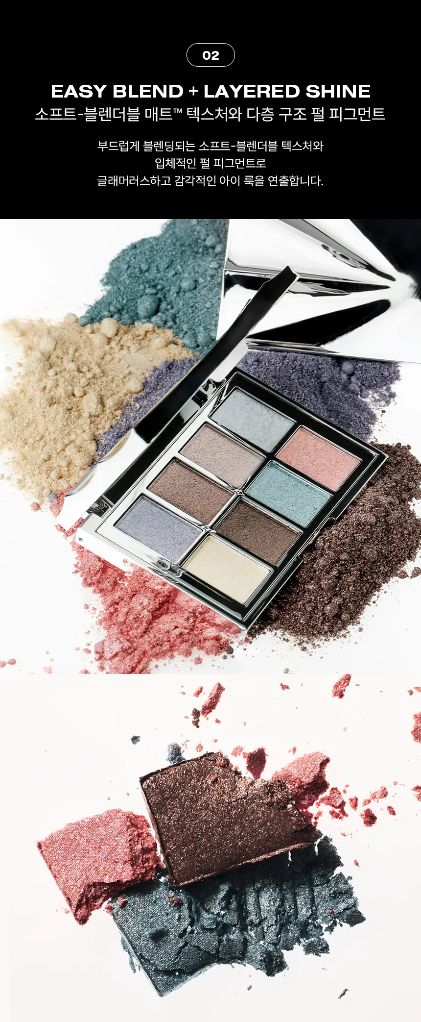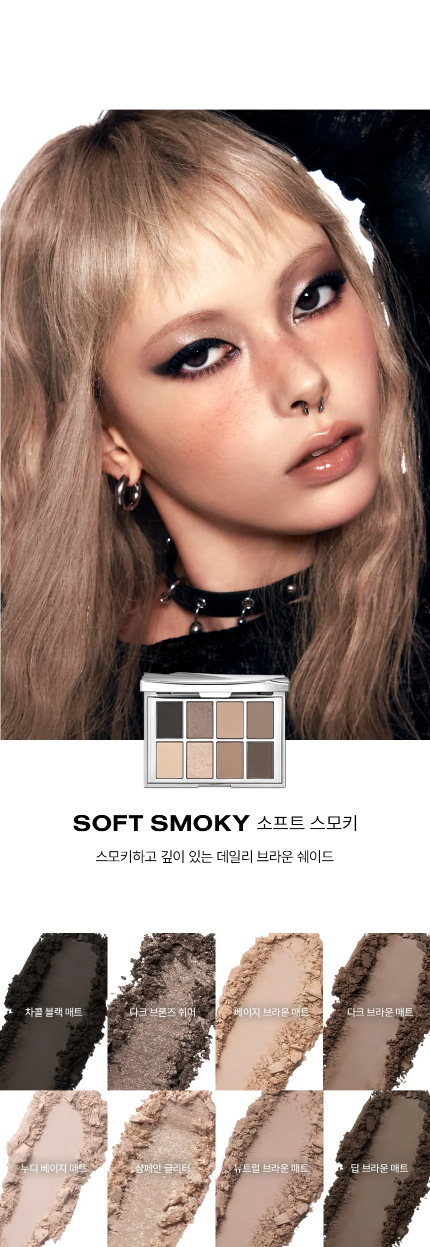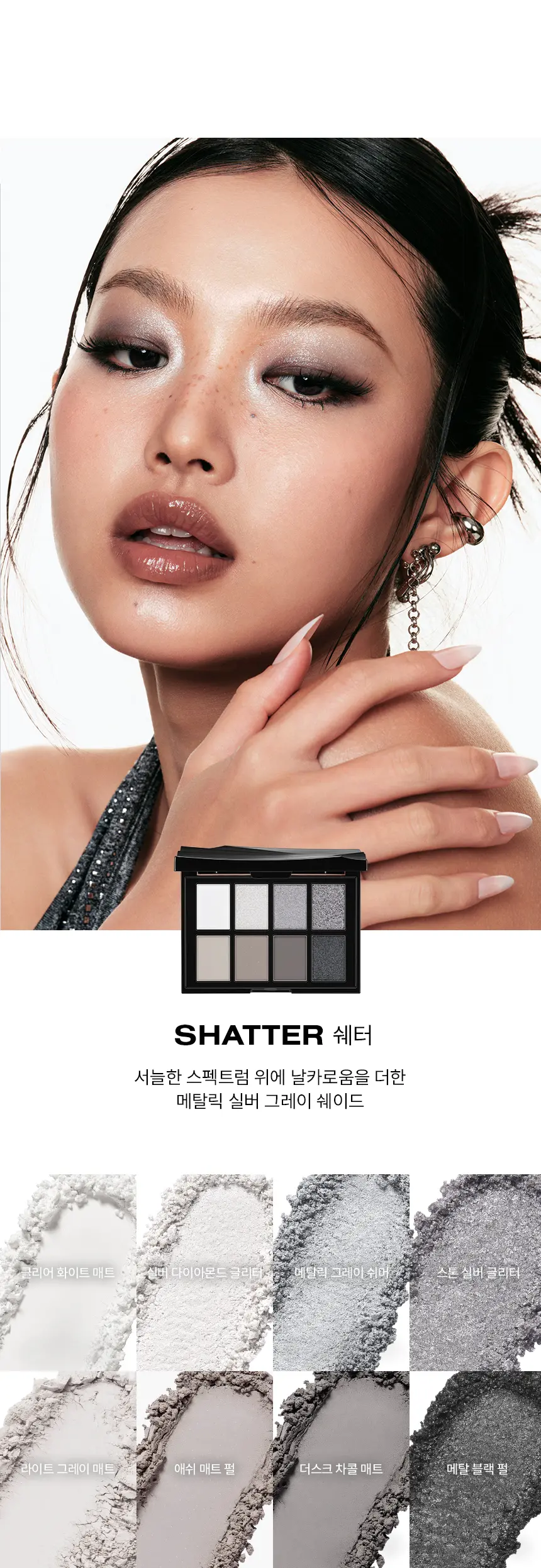 ⚡ 實驗性冷調: 專為大膽、酷感妝容設計,集結冷色調金屬光澤與深邃色澤,輕鬆切換 Grunge 廢土風或 Siren Eyes 魅惑妝感。