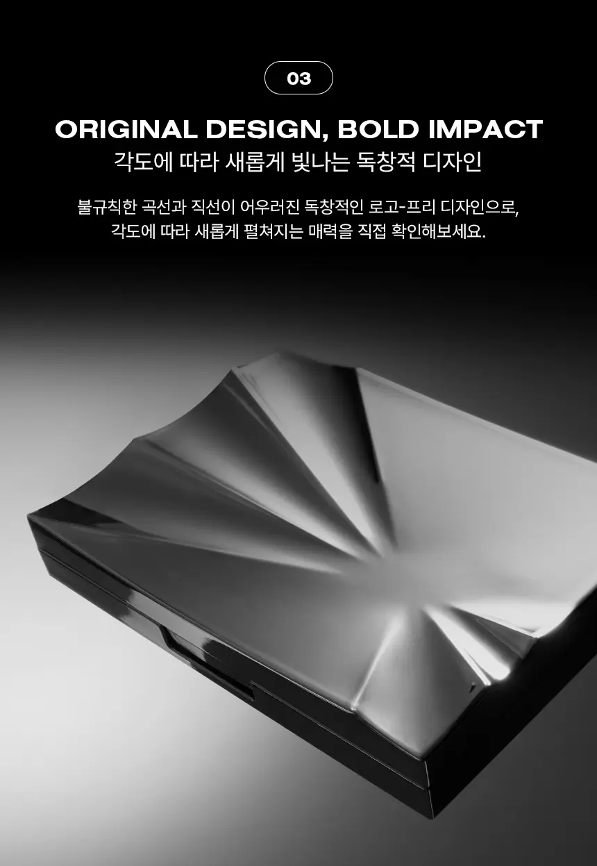 🖤 解構主義包裝: 獨特的流線型無 Logo 設計,結合不對稱的曲線與幾何線條,展現極簡且前衛的工業美學。