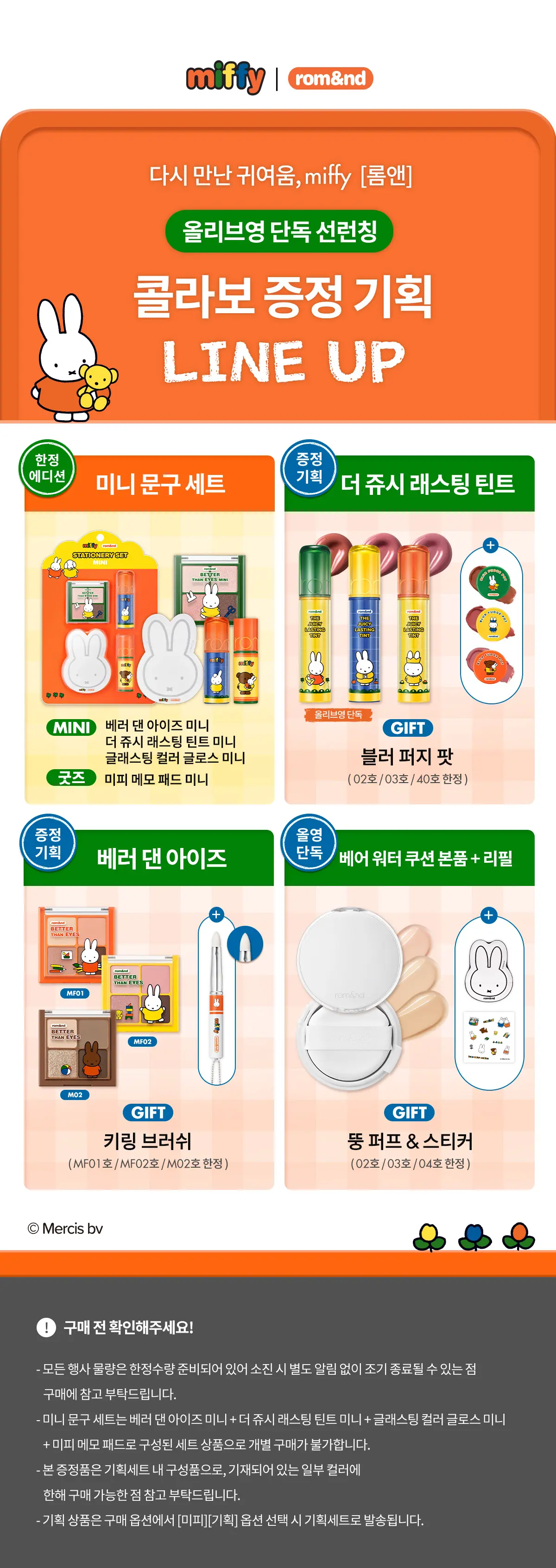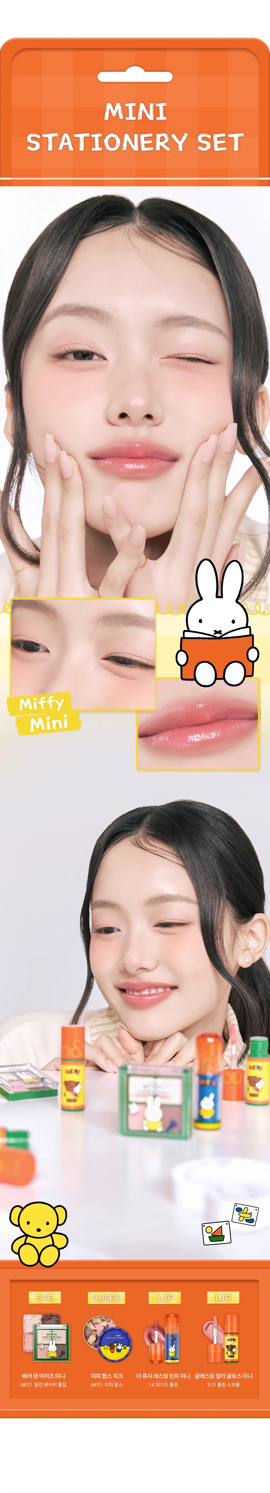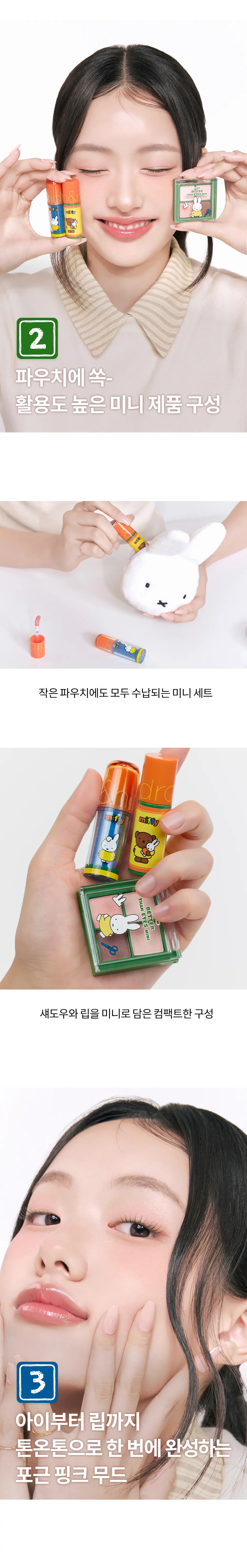 💖 粉嫩鬱金香色系:以經典「Dry Baby Tulip」為靈感,調配出初春感的桃粉與活力橘色調。包含迷你四色眼影與兩款不同質感的唇彩,輕鬆打造韓系溫柔、清澈的「鬱金香妝容」。