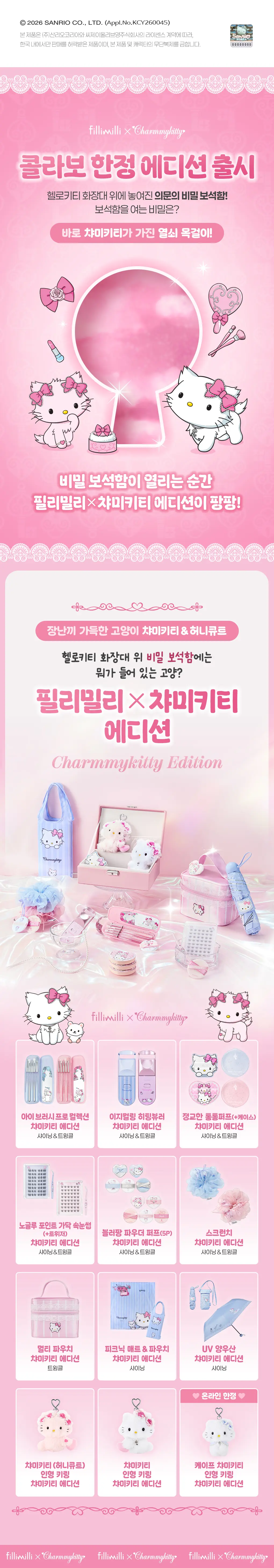 🛡️ 專屬閃耀收納袋:組合隨附一個印有 Charmmy Kitty 閃耀圖案的拉鍊收納袋。不僅方便收納摺疊後的野餐墊,多出的空間還能放入 FILLIMILLI 晴雨傘 或防曬噴霧,一袋拎起即可出發,盡顯收納美學。