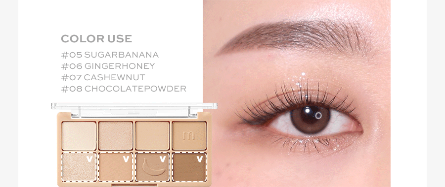 其獨特之處在於**「色彩的透明度」。即使是新手,也能利用這盤眼影畫出無邊界的自然過渡感。亮片部分特別設計成濕粉質地**,能緊密貼合肌膚而不掉渣,散發出如同冰晶般細緻的光澤。這是一盤能讓妝容看起來「很高級卻不費力」的萬能盤,完美詮釋了韓系美學中「若有似無」的高級妝感。
