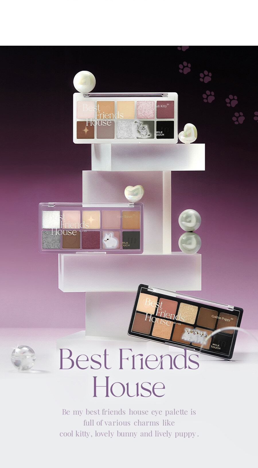 這款 Best Friends House Eye Palette 是 Milk Touch 針對「收藏控」與「氛圍妝愛好者」推出的重磅單品。其設計概念是將眼影盤化作溫馨的小屋,色彩則代表了陪伴在我們身邊最忠誠的夥伴所帶來的溫暖感受。
