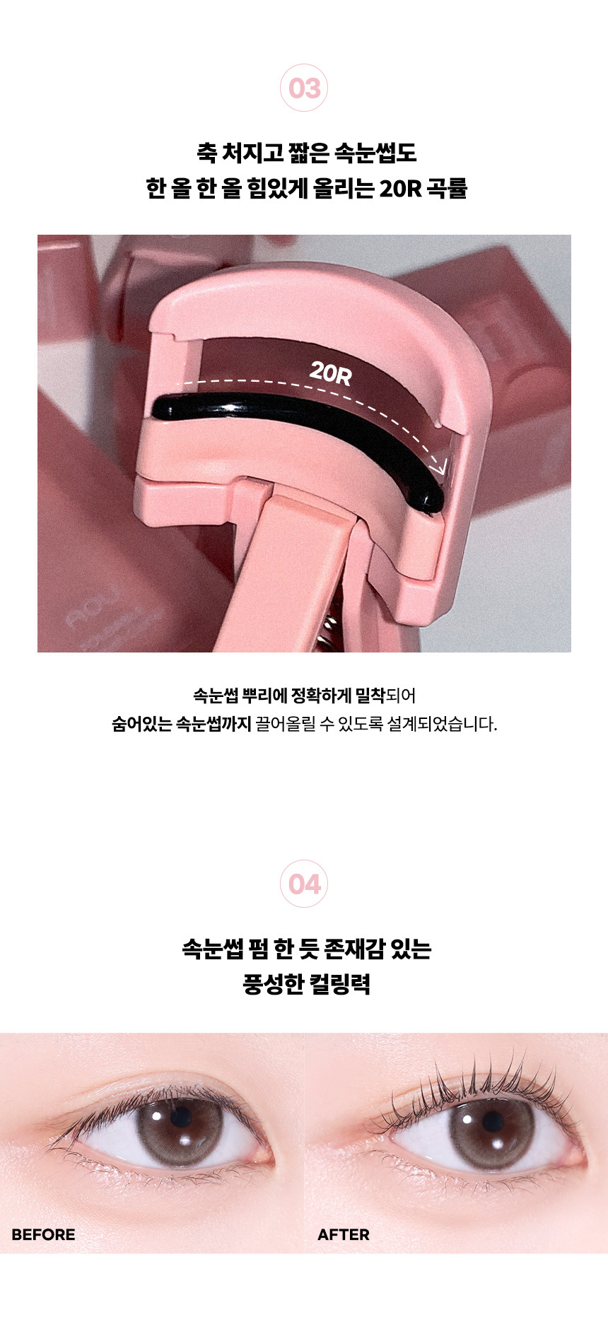 💧 20R 弧度,精準貼合亞洲眼型,連眼頭細小睫毛也能捕捉。