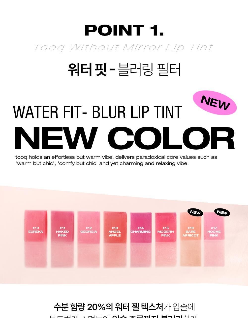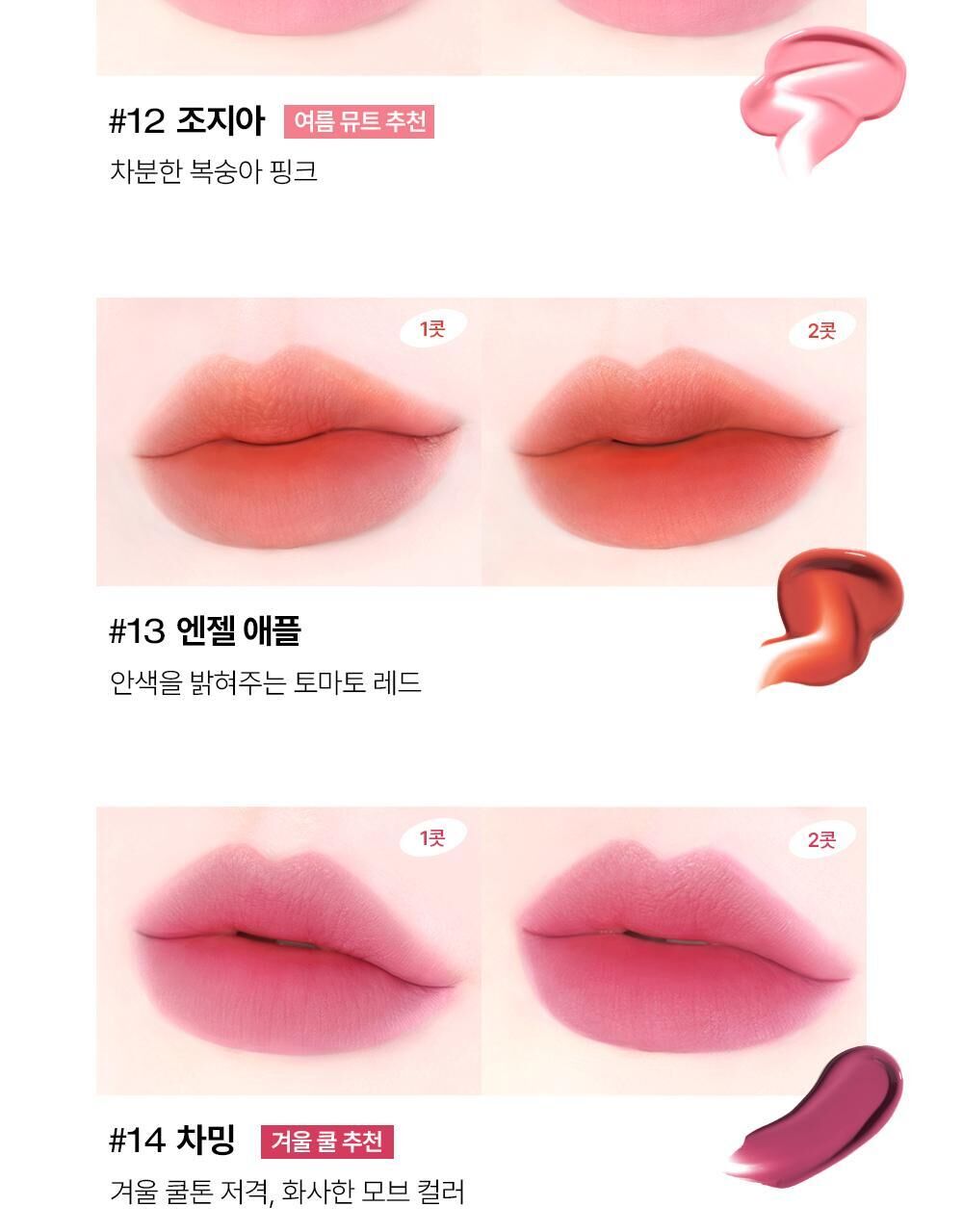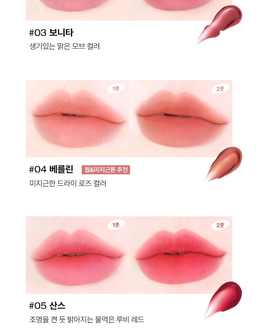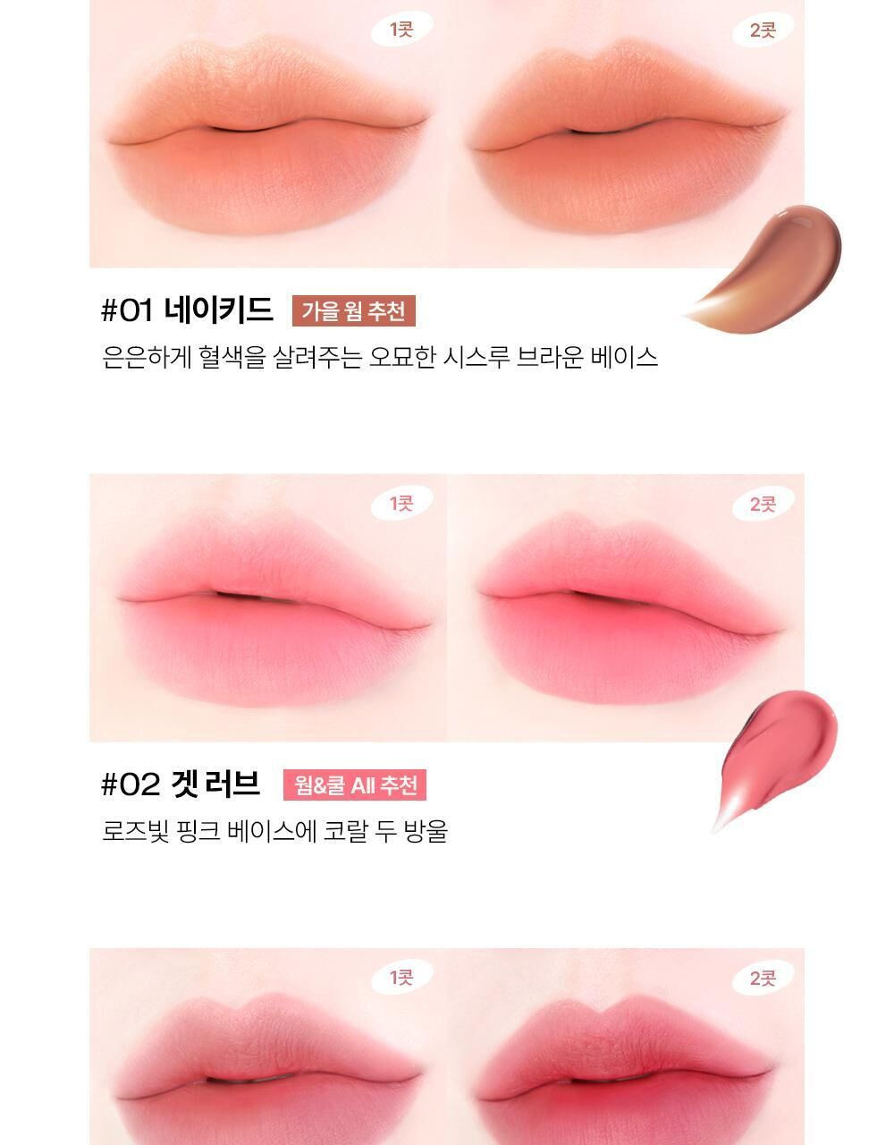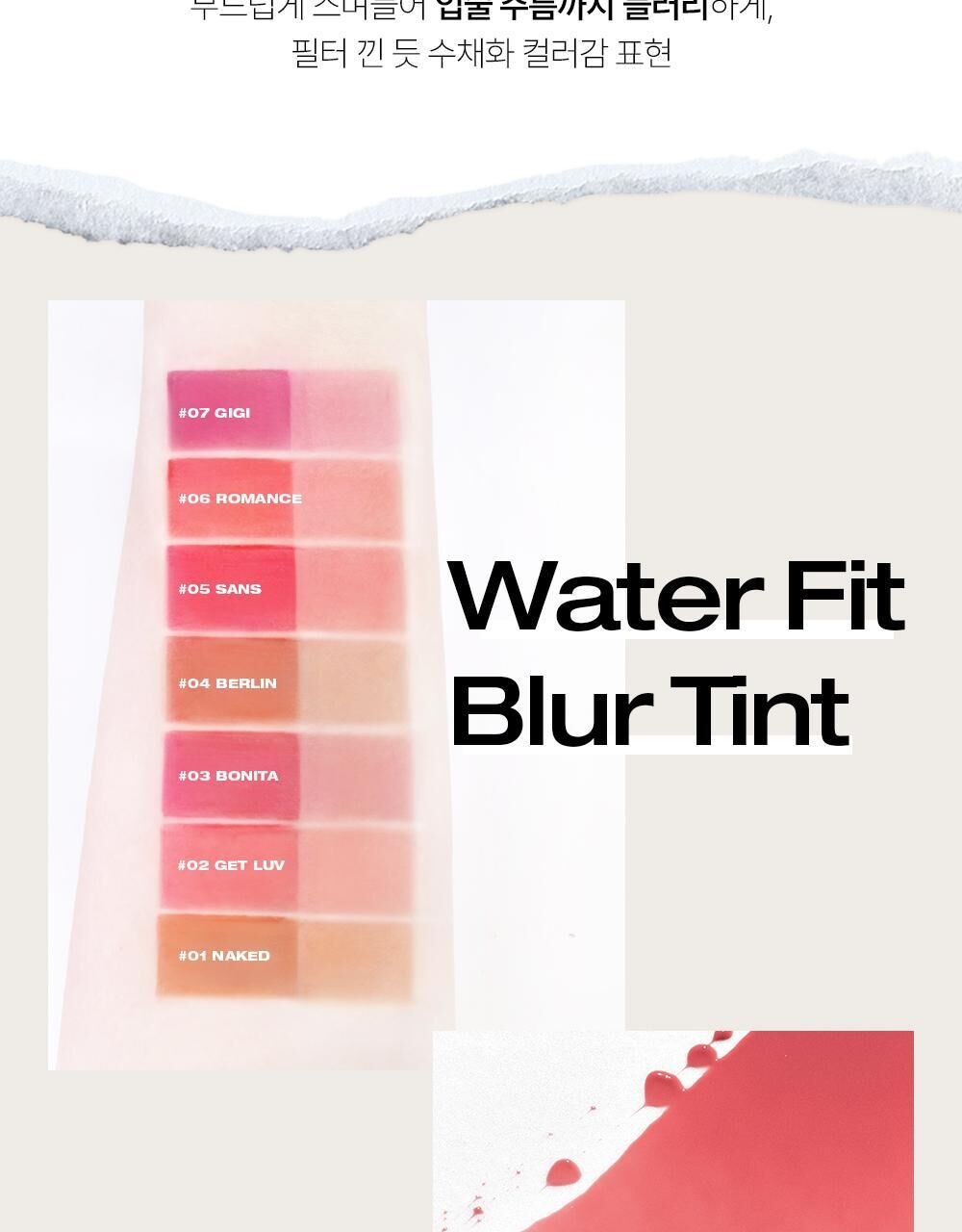 💖 水凝膠轉柔霧質地,輕薄暈染,柔焦唇紋。